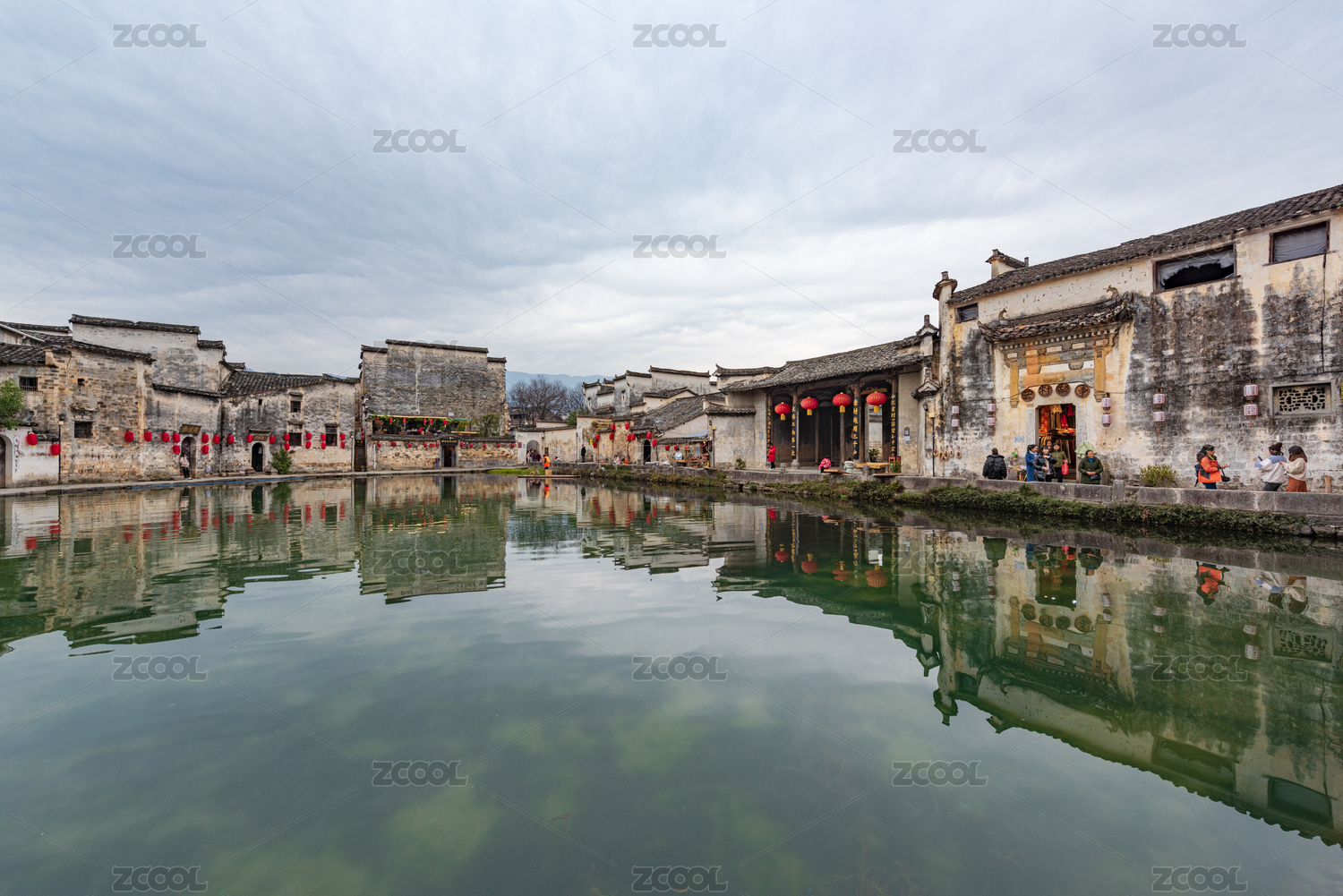 安徽省黄山市黟县宏村月沼古建筑住宅倒影