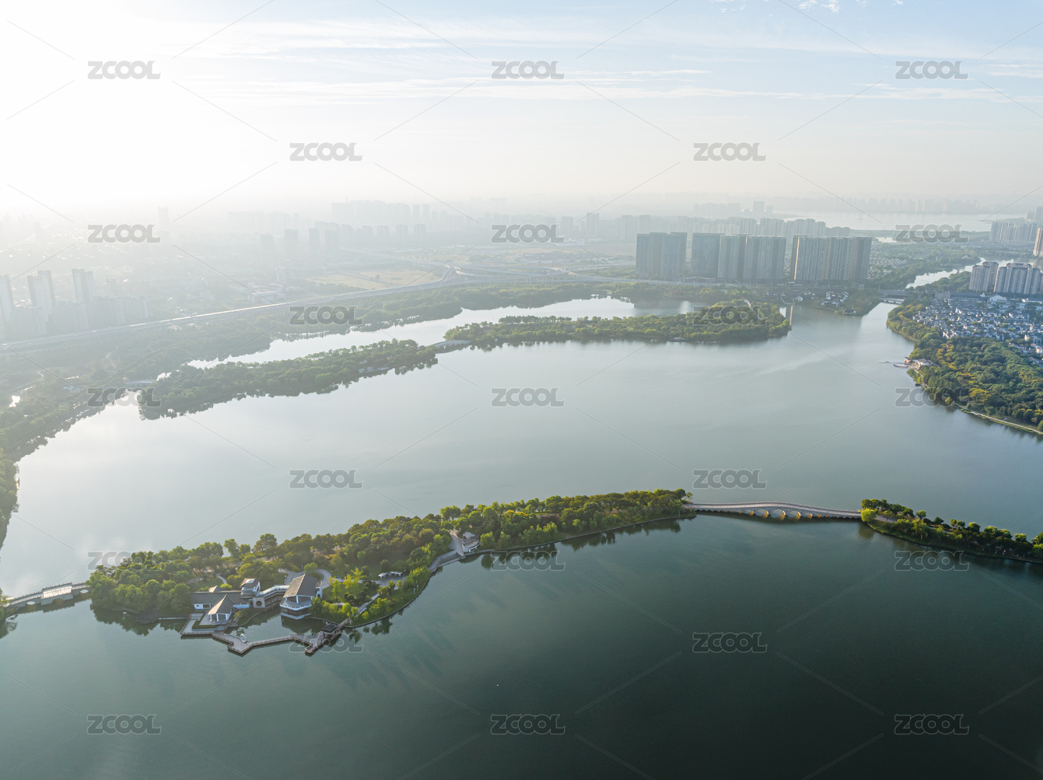中国南京玄武湖公园台菱堤台菱桥风景航拍
