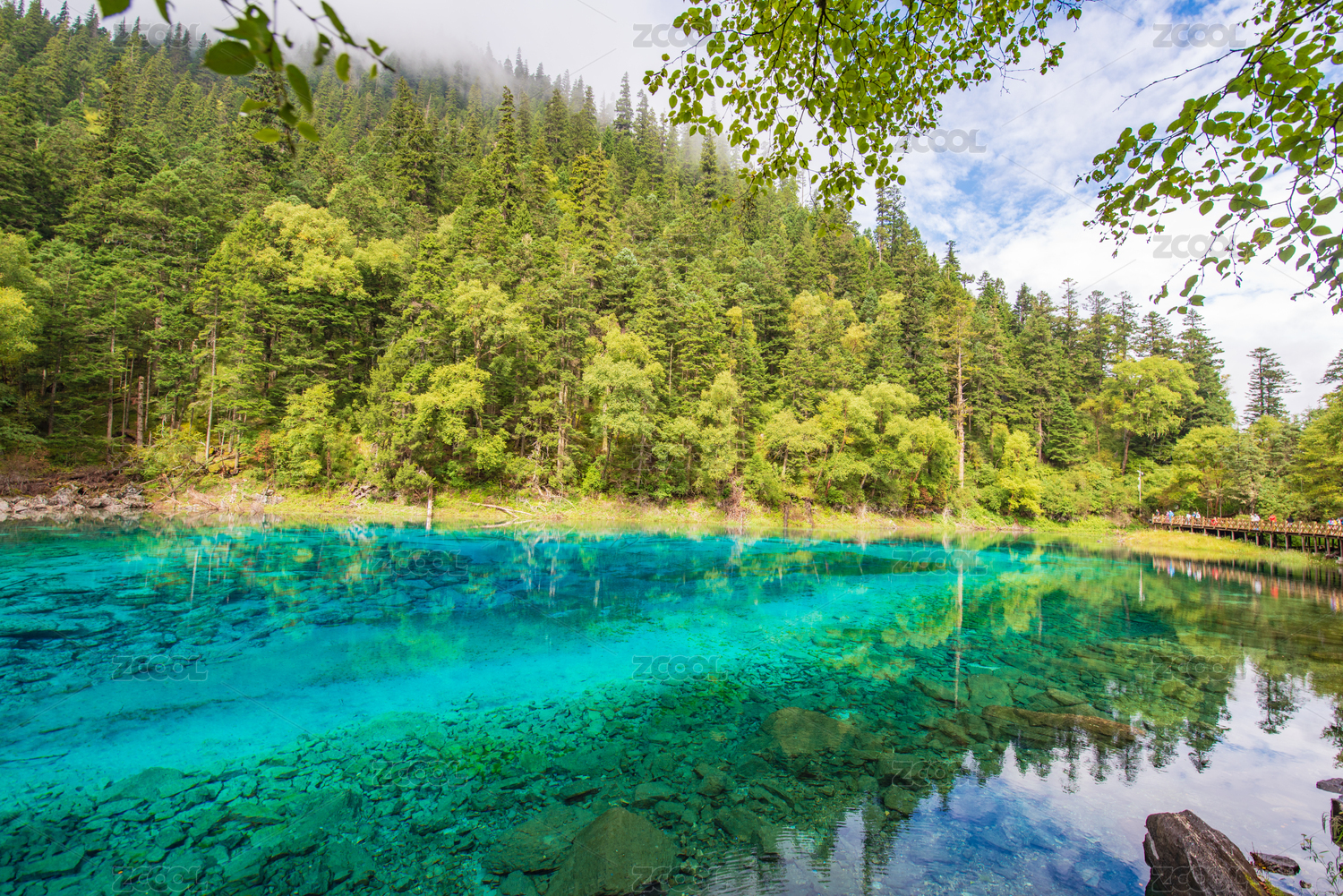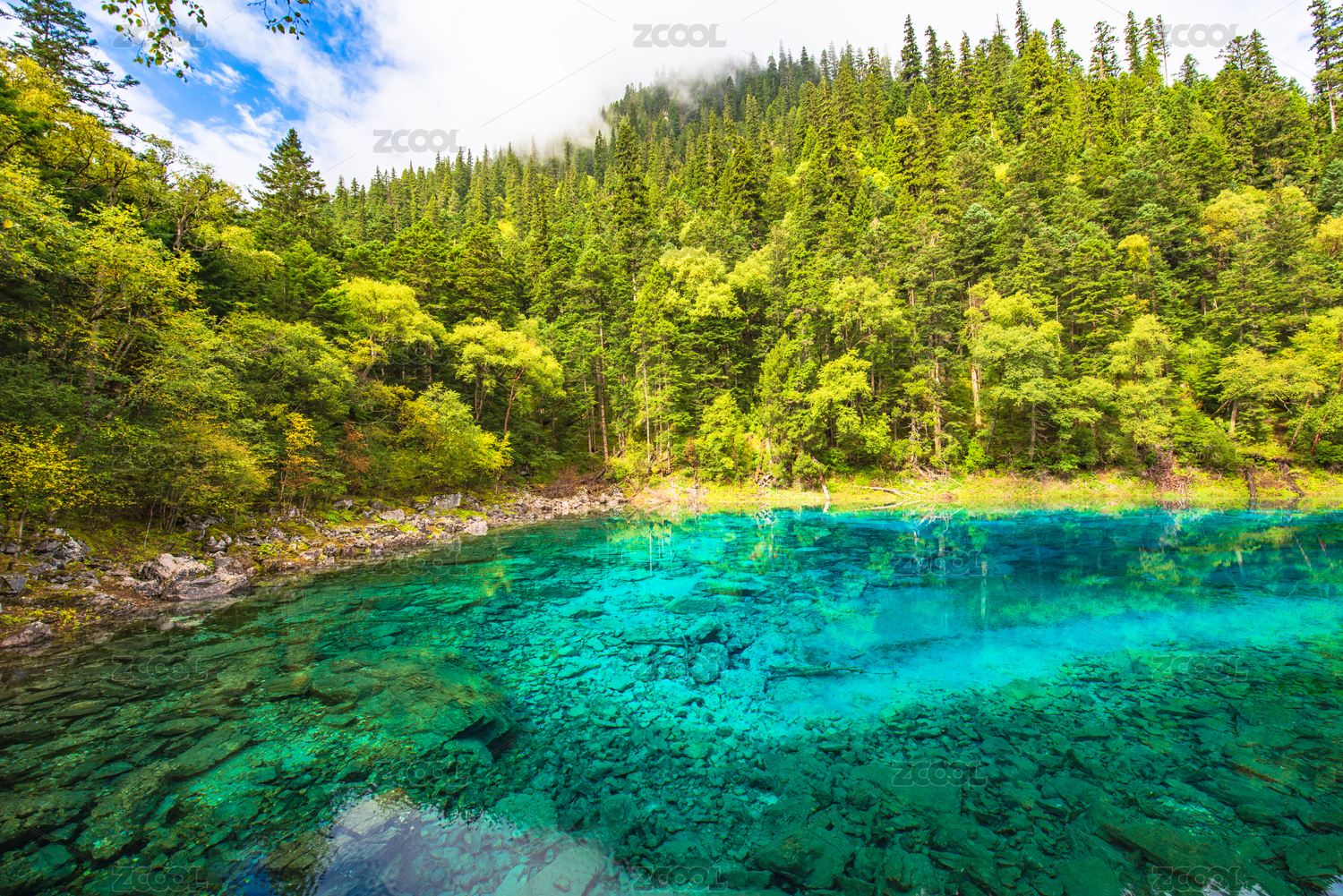 四川,九寨沟,珍珠滩,湖泊,水池,清澈,蓝色,湛蓝,干净,森林
