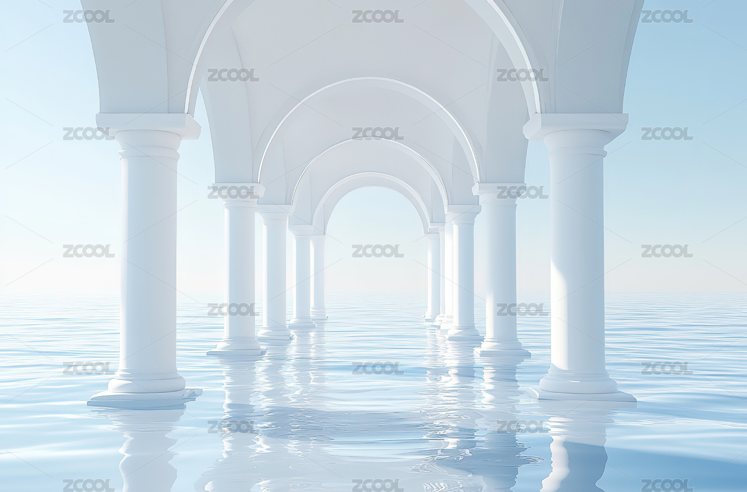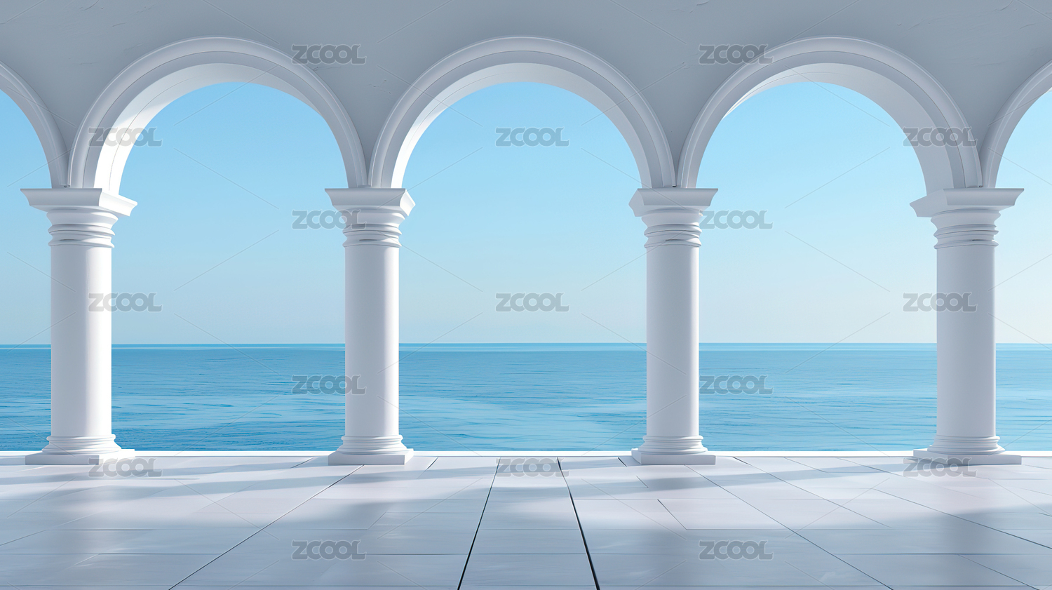 白色廊柱与蓝天