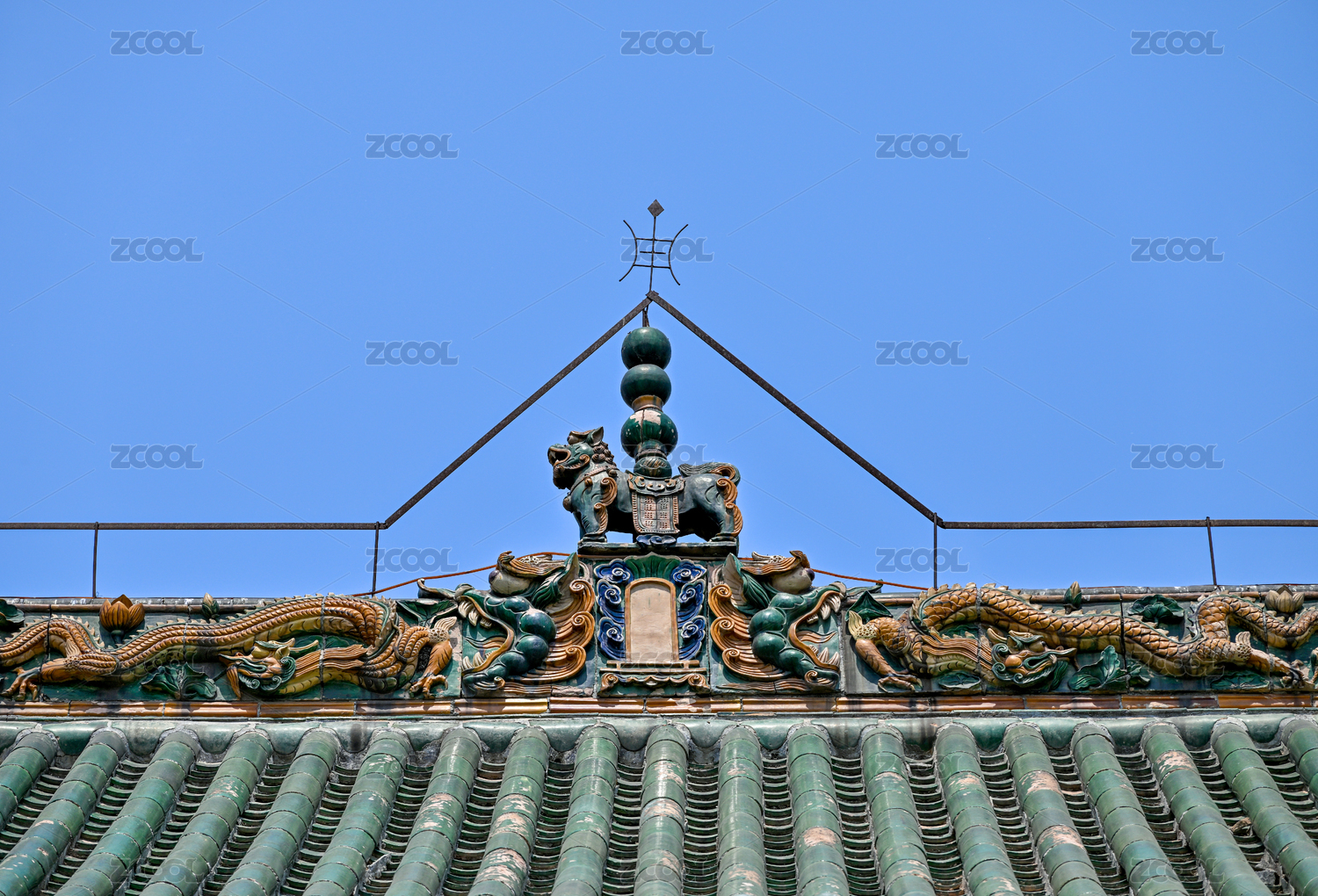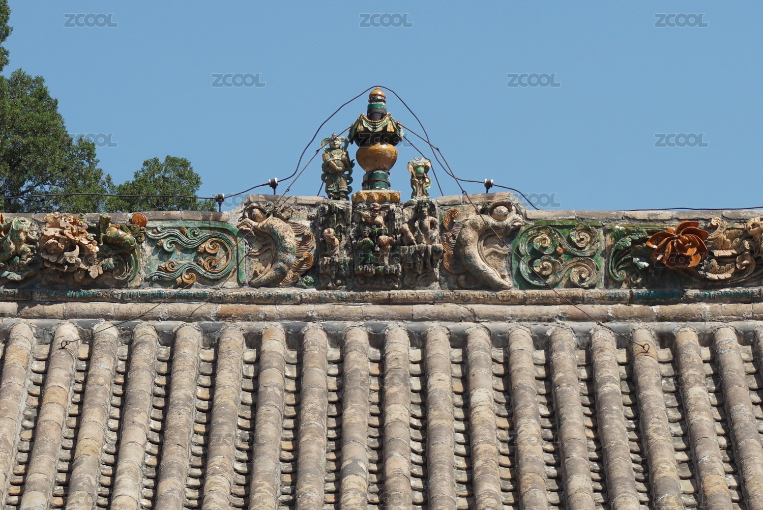 山西省朔州崇福寺弥陀殿古建筑屋顶琉璃脊饰