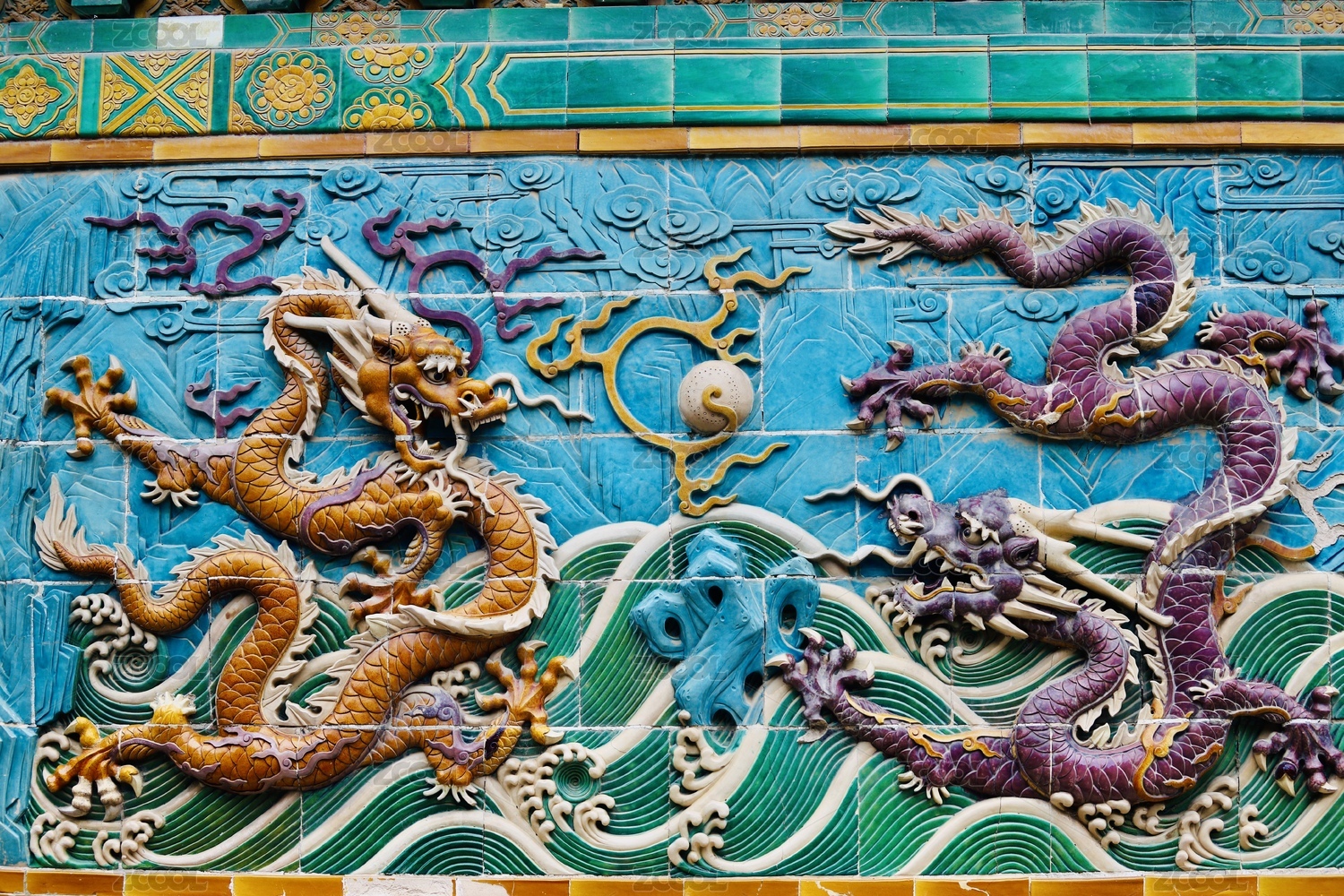 北京故宫博物院九龙壁琉璃瓦壁画局部