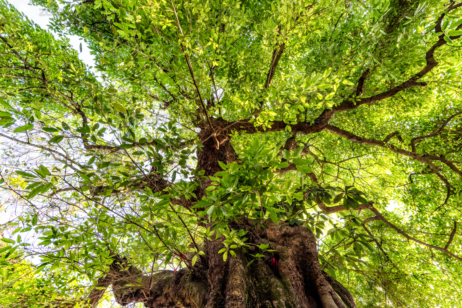 公园里蓬勃生长的黄葛树/黄桷树的树下视角