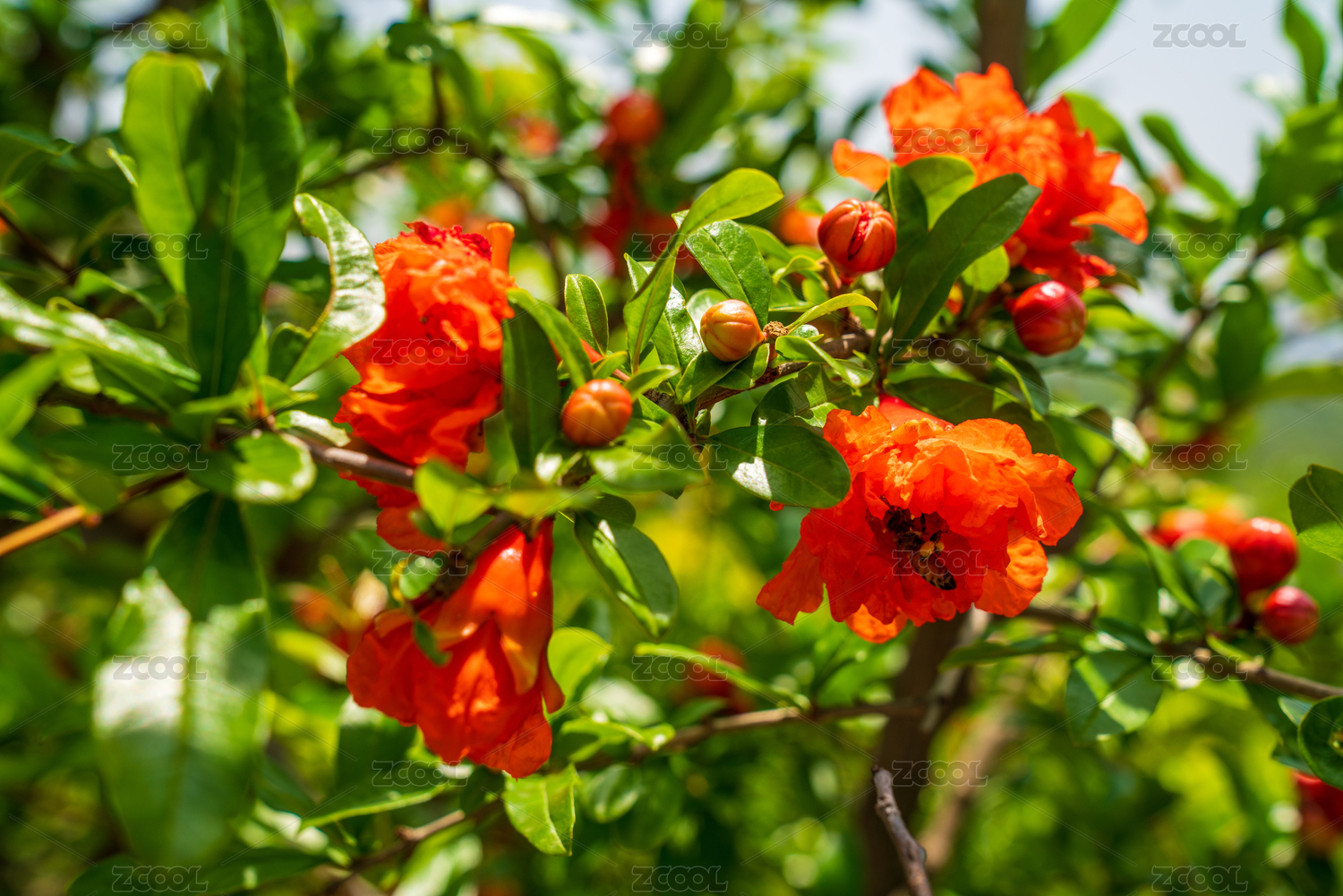 红花,花朵,果树,花卉,果园,园林,树木,特写,开花,绿叶