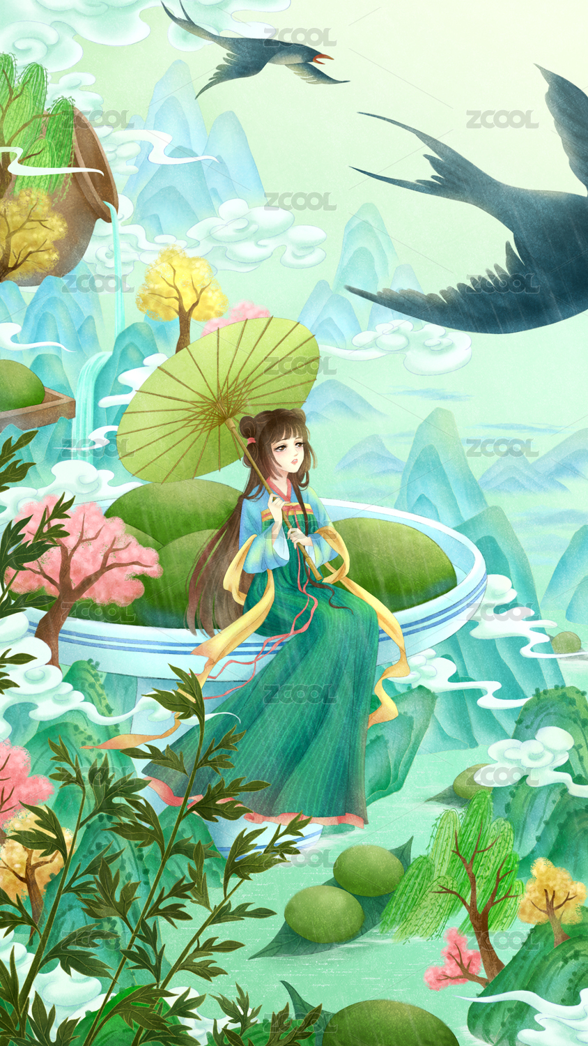 节气,二十四节气,国风,国潮,插画,汉服,夏至,夏天,荷塘,莲花