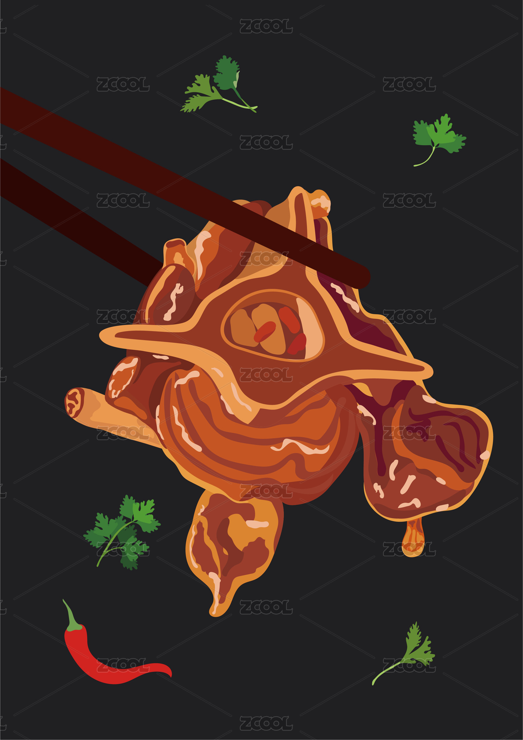 冬季新年腌火腿腊肉新年节日节气插画元素