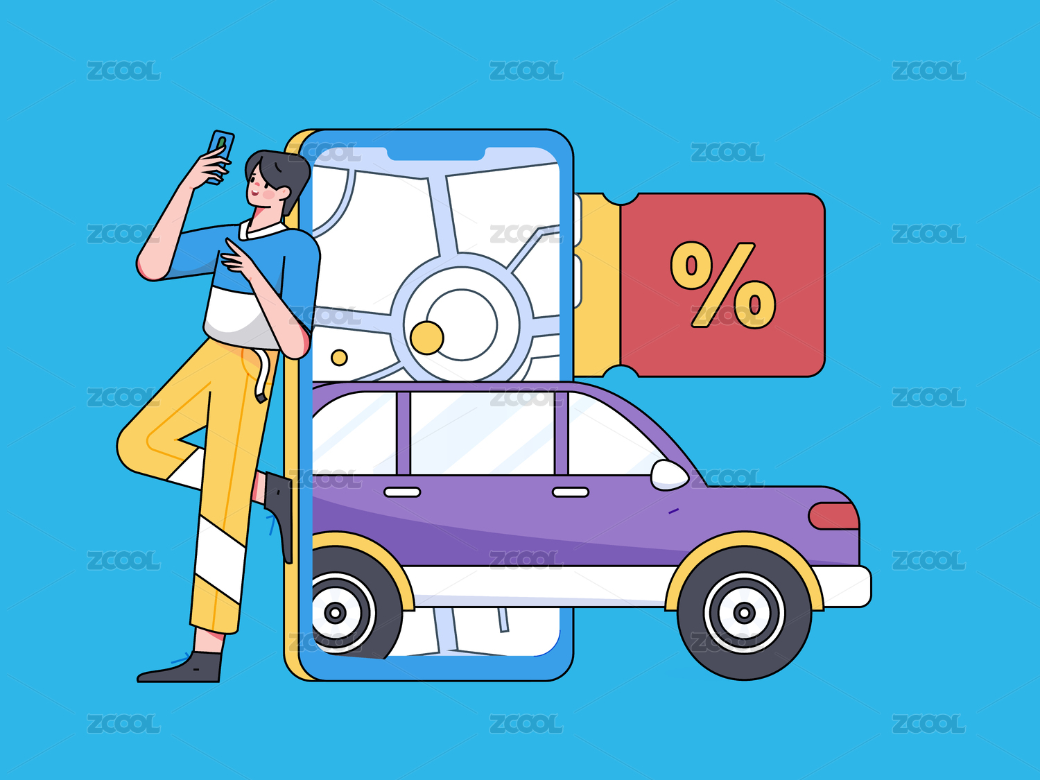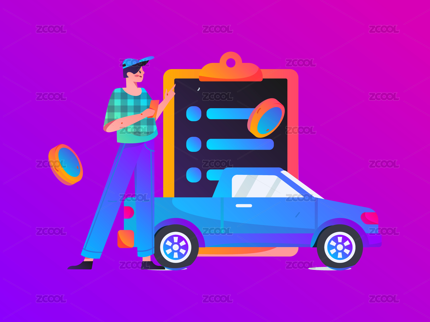卡通汽车保险购车贷款买车促销活动矢量背景插画