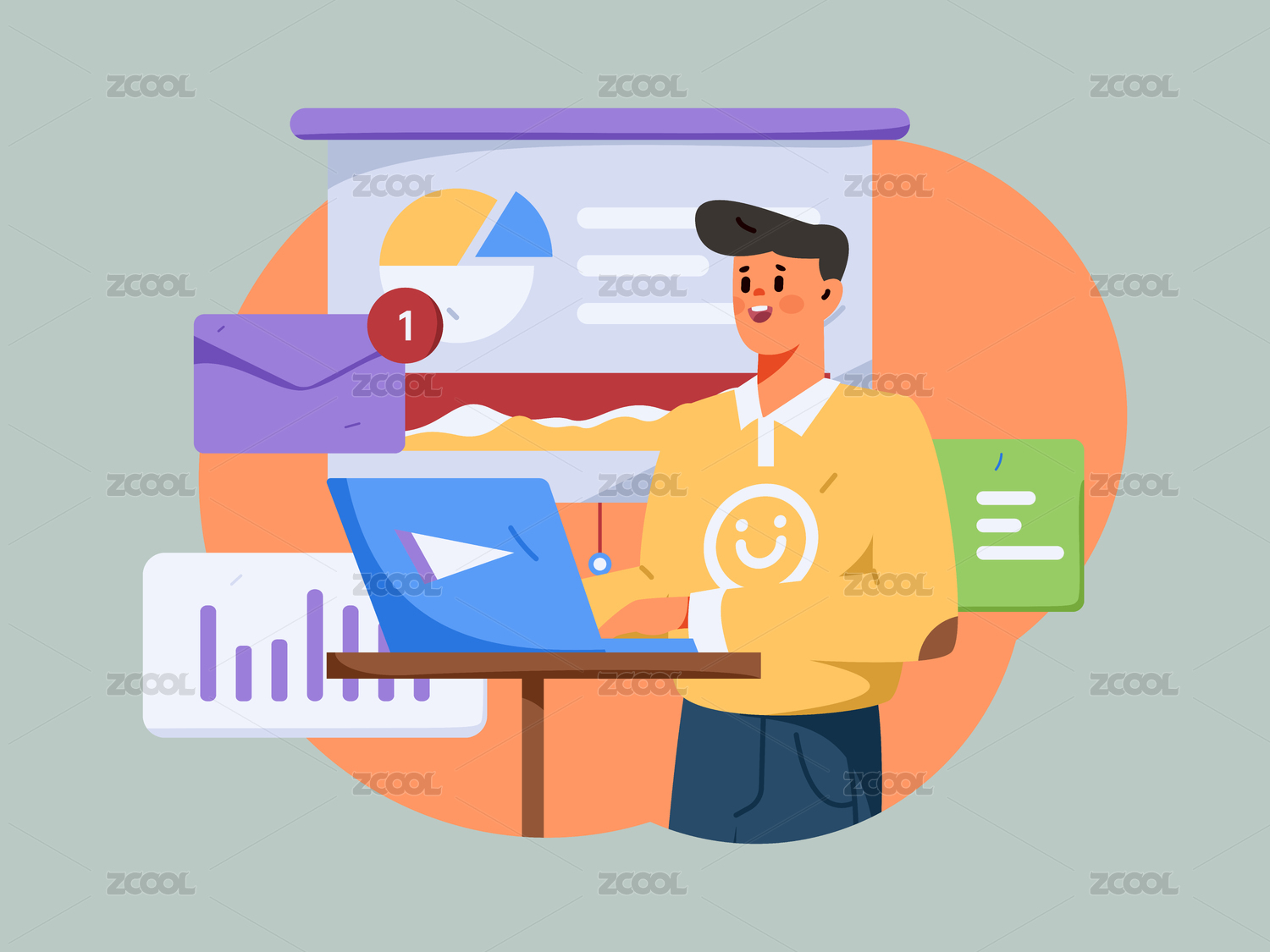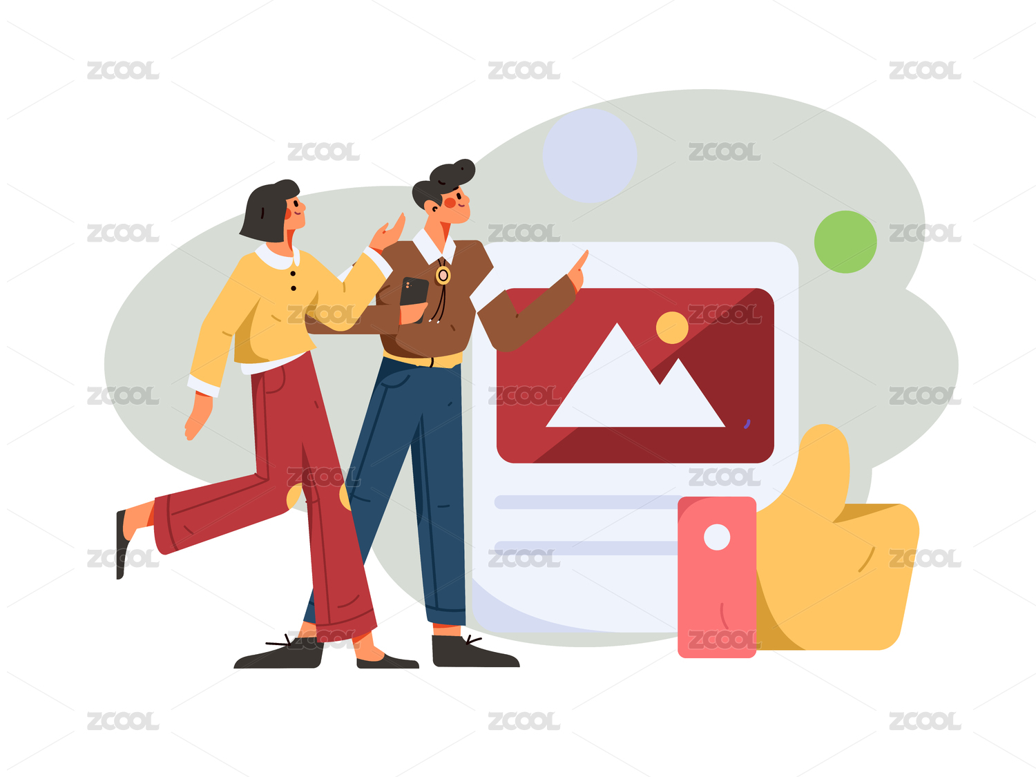 虚拟的人物社交沟通概念商业扁平矢量手绘插