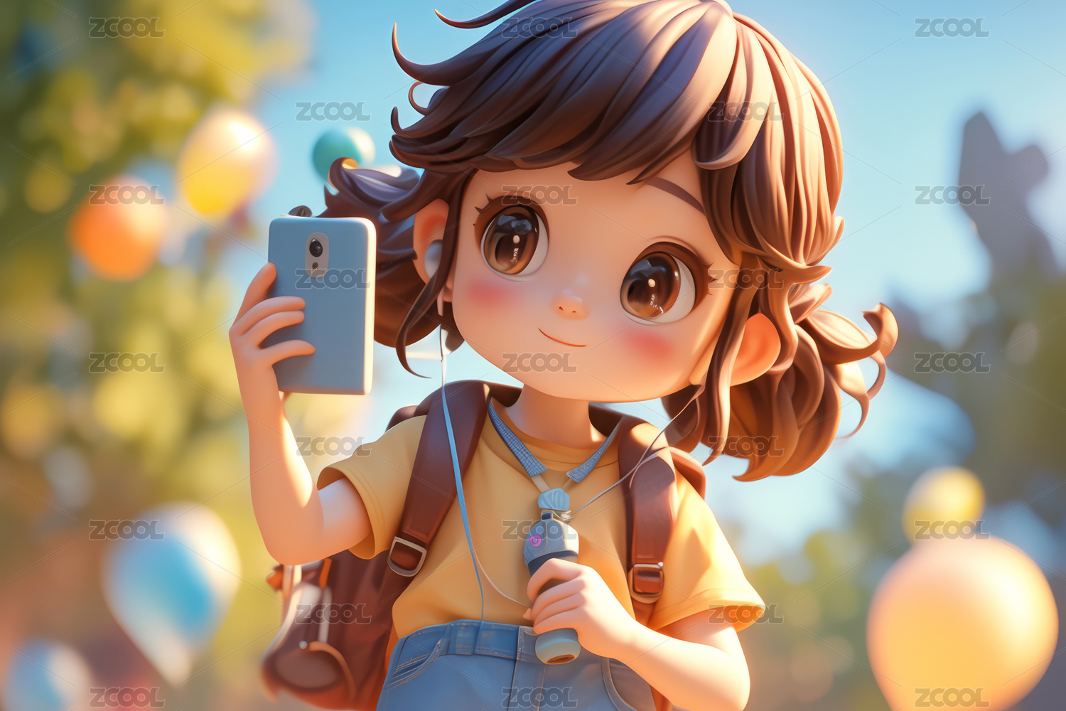 卡通小女巫扫帚黑猫蘑菇云朵梦幻场景