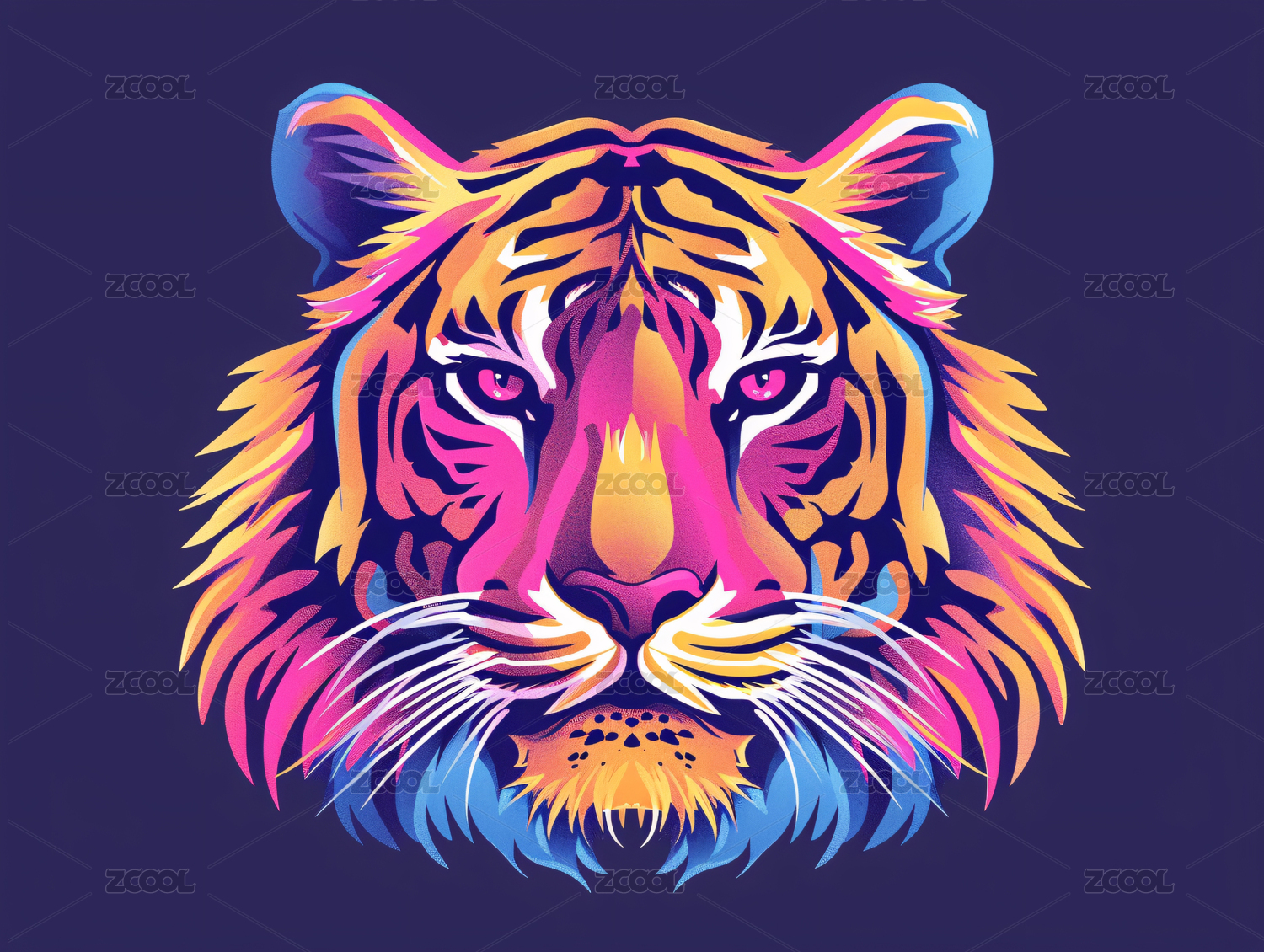 蓝粉色赛博金钱猎豹头像T恤印花图案