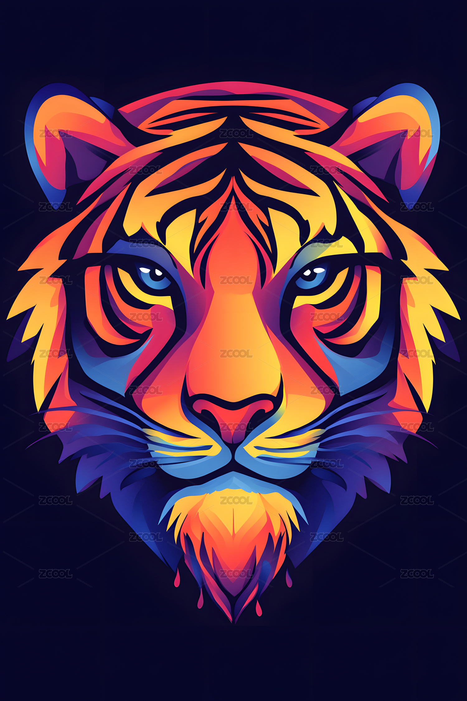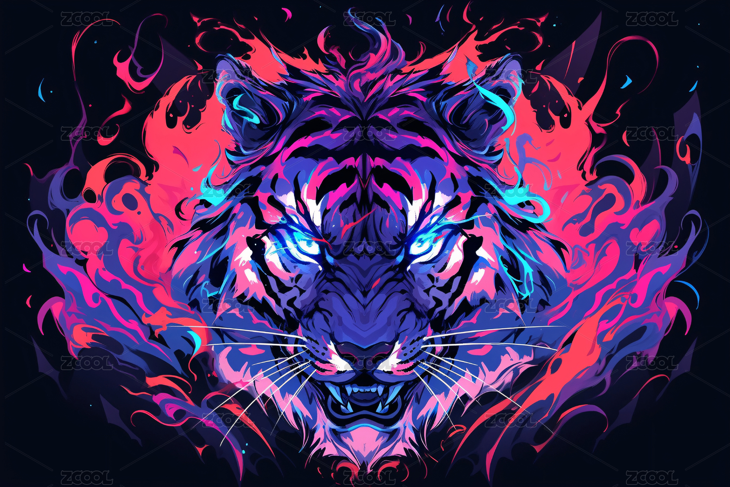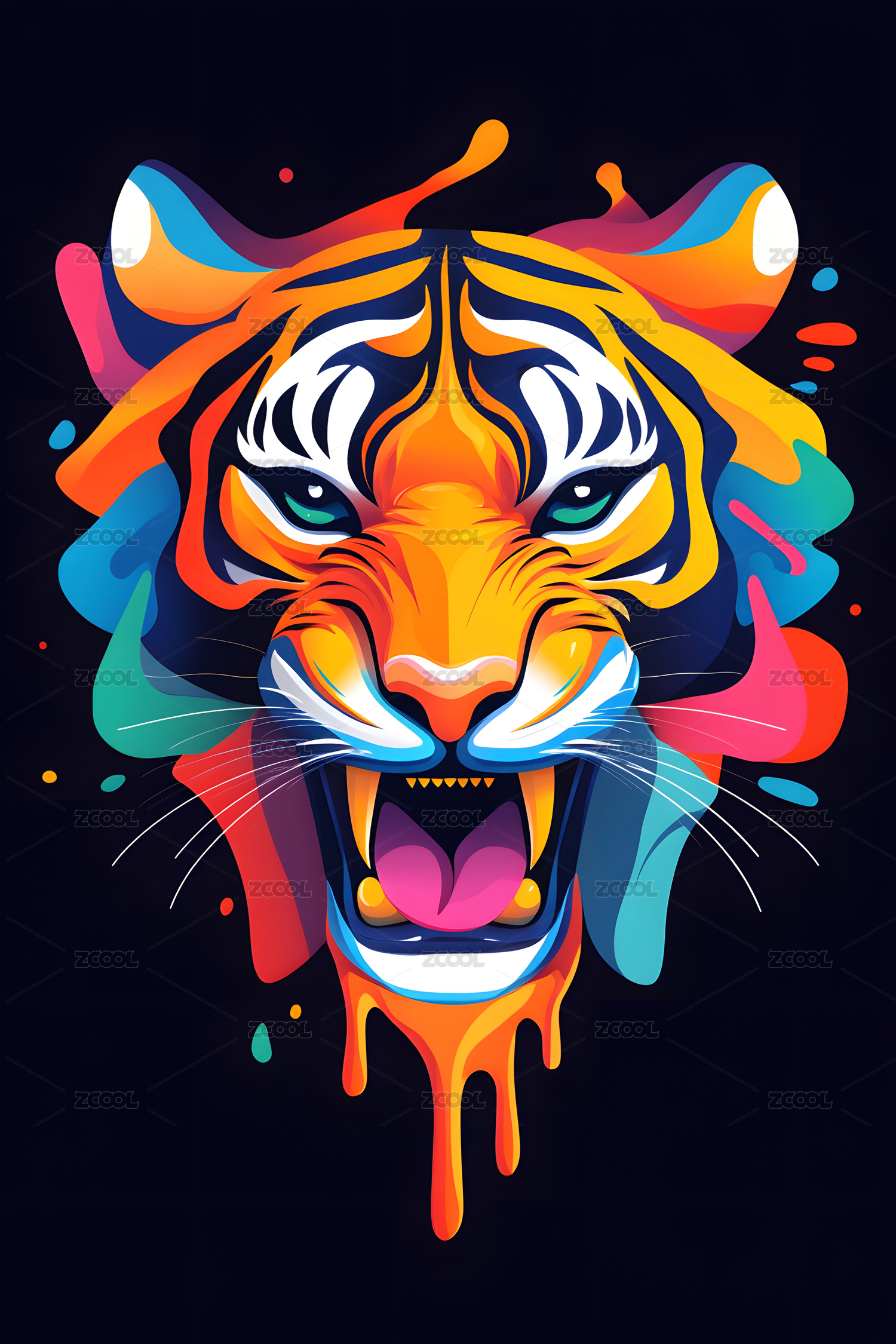 国潮虎十二生肖潮流中国风印花装饰纹样图案