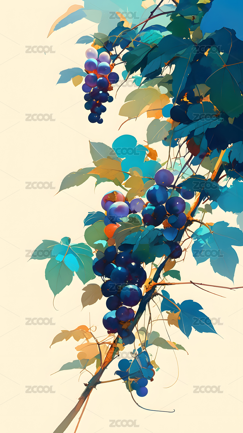 AIGCFG,中式,中国风,国潮风,插画,卡通,水果,葡萄