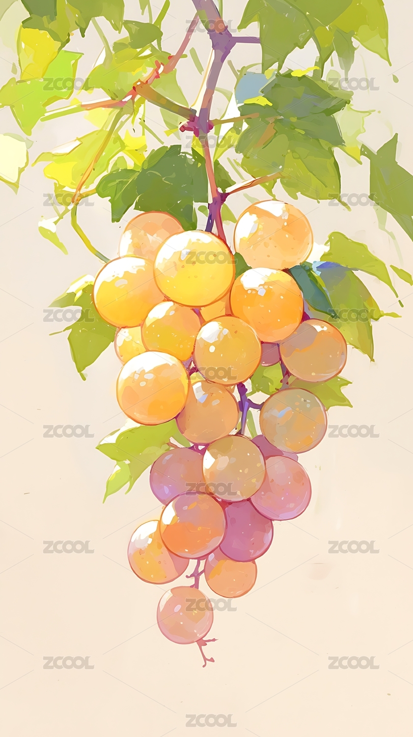淡彩手绘风格水果系列之葡萄