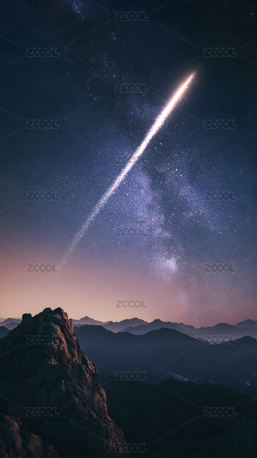 流星划过山峦夜空