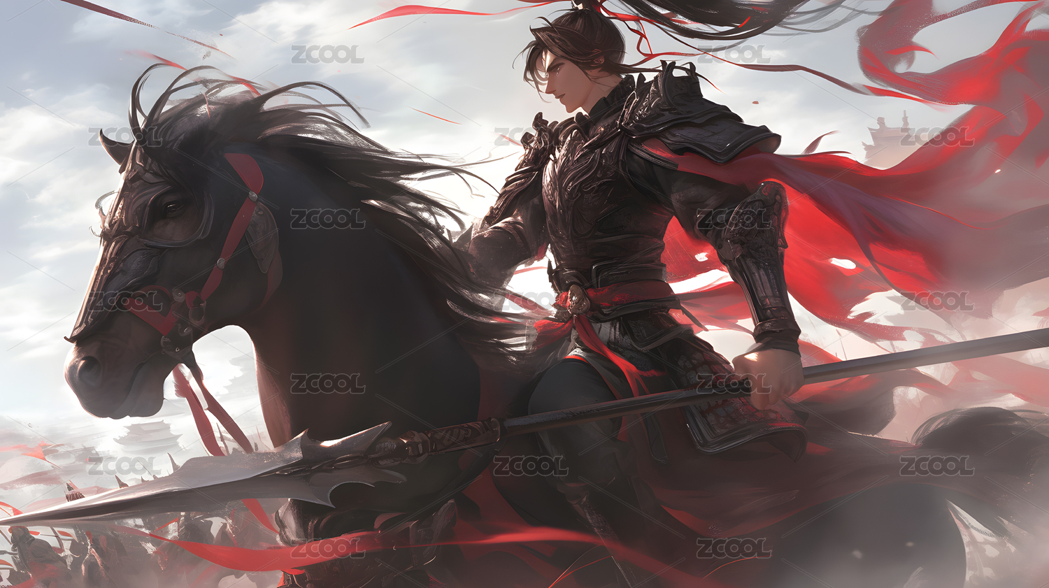 国潮风战场骑着马的将军