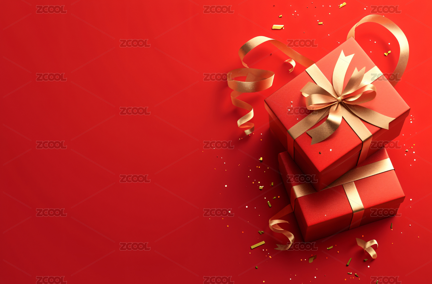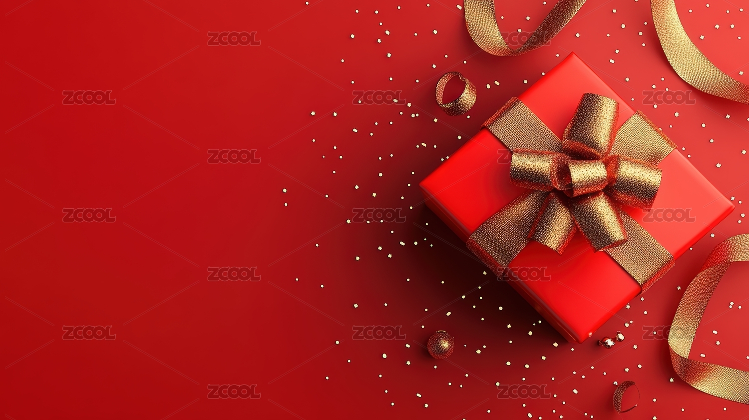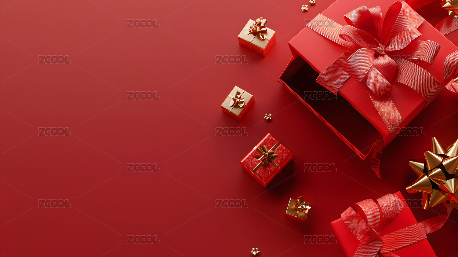红色礼盒搭配金色丝带的精美礼物