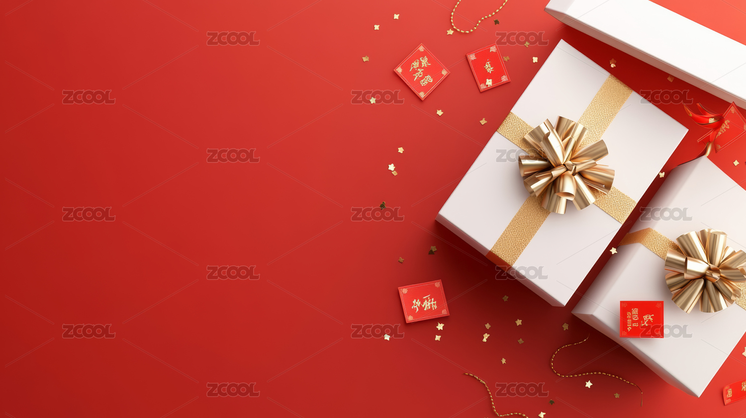 中国新年礼盒礼物红色背景