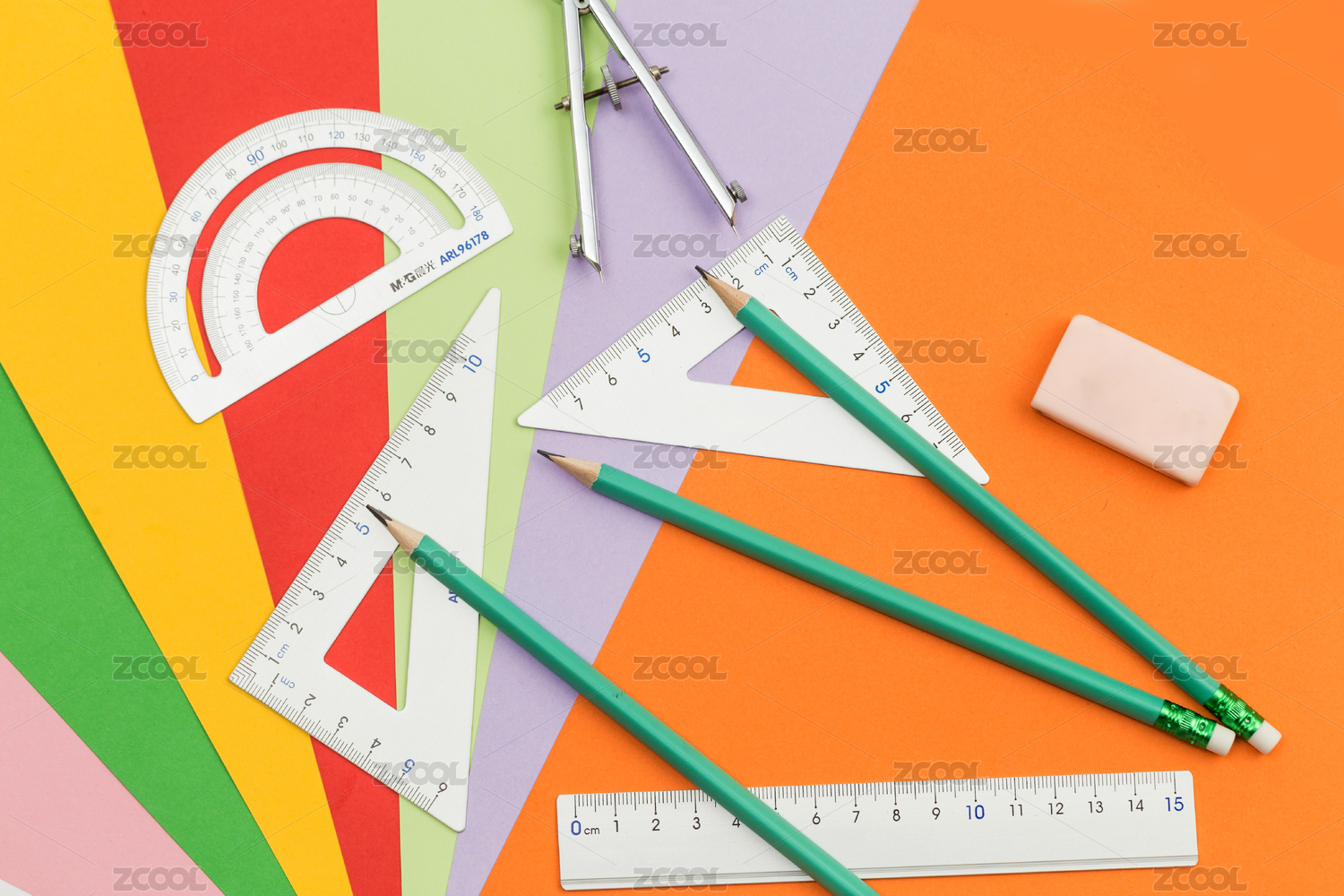 办公用品,文具,尺子,铅笔,商务,学习,桌面,排列,办公,无人