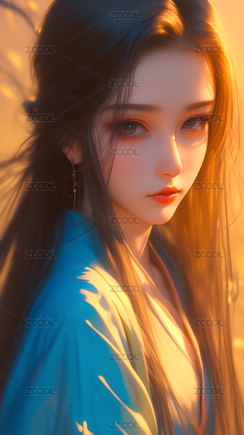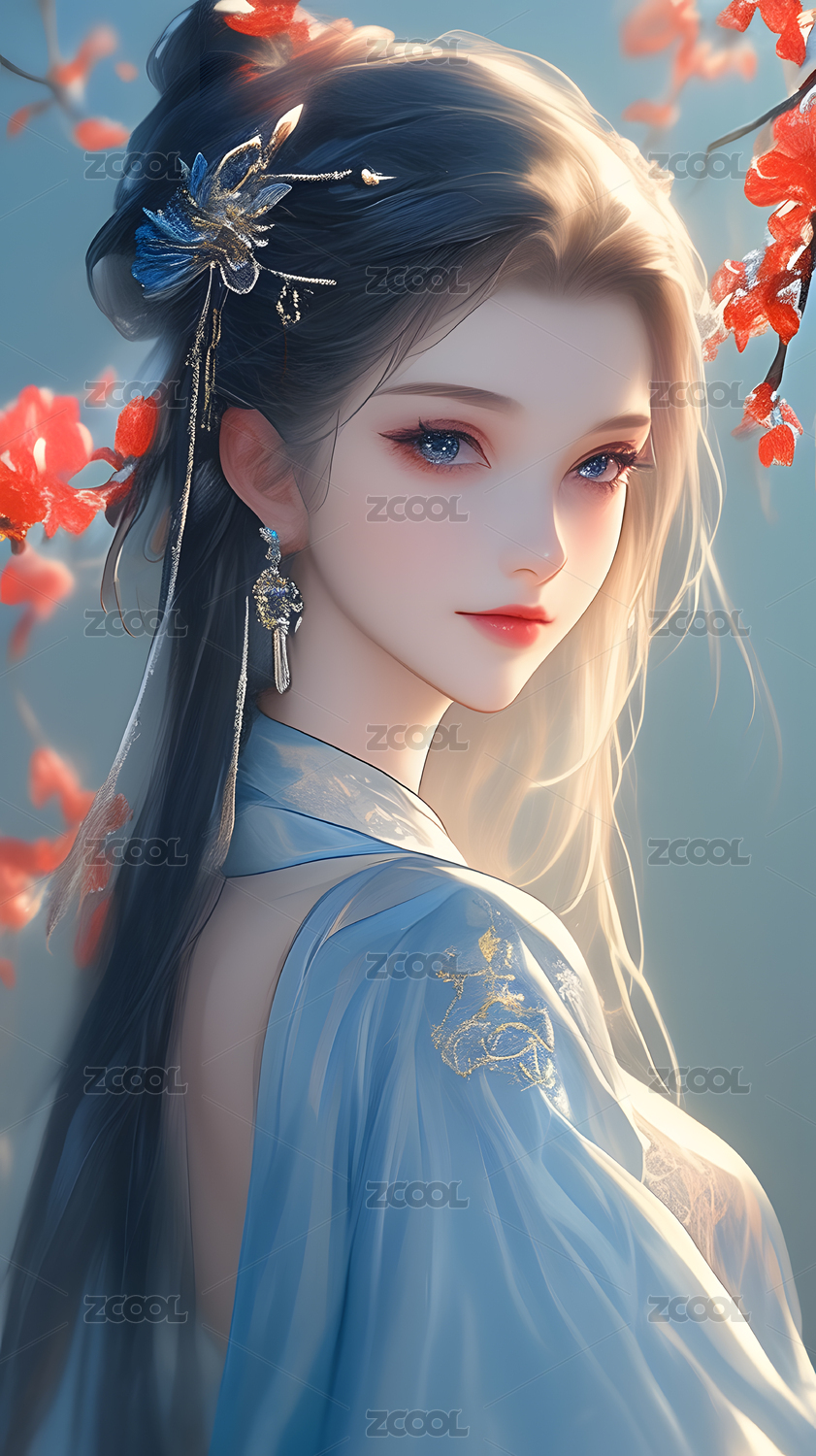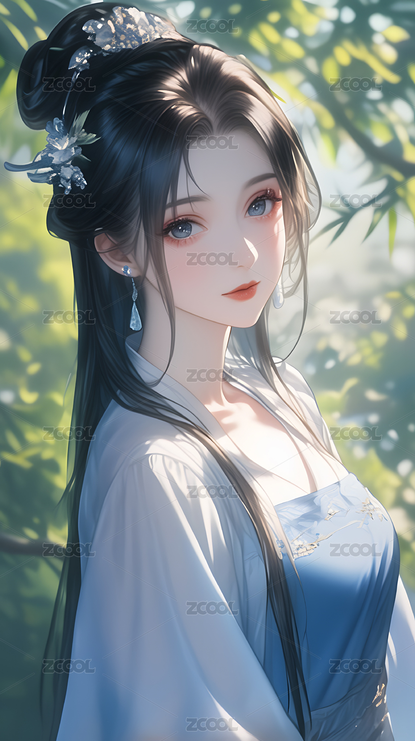 优雅古风女子长发飘逸