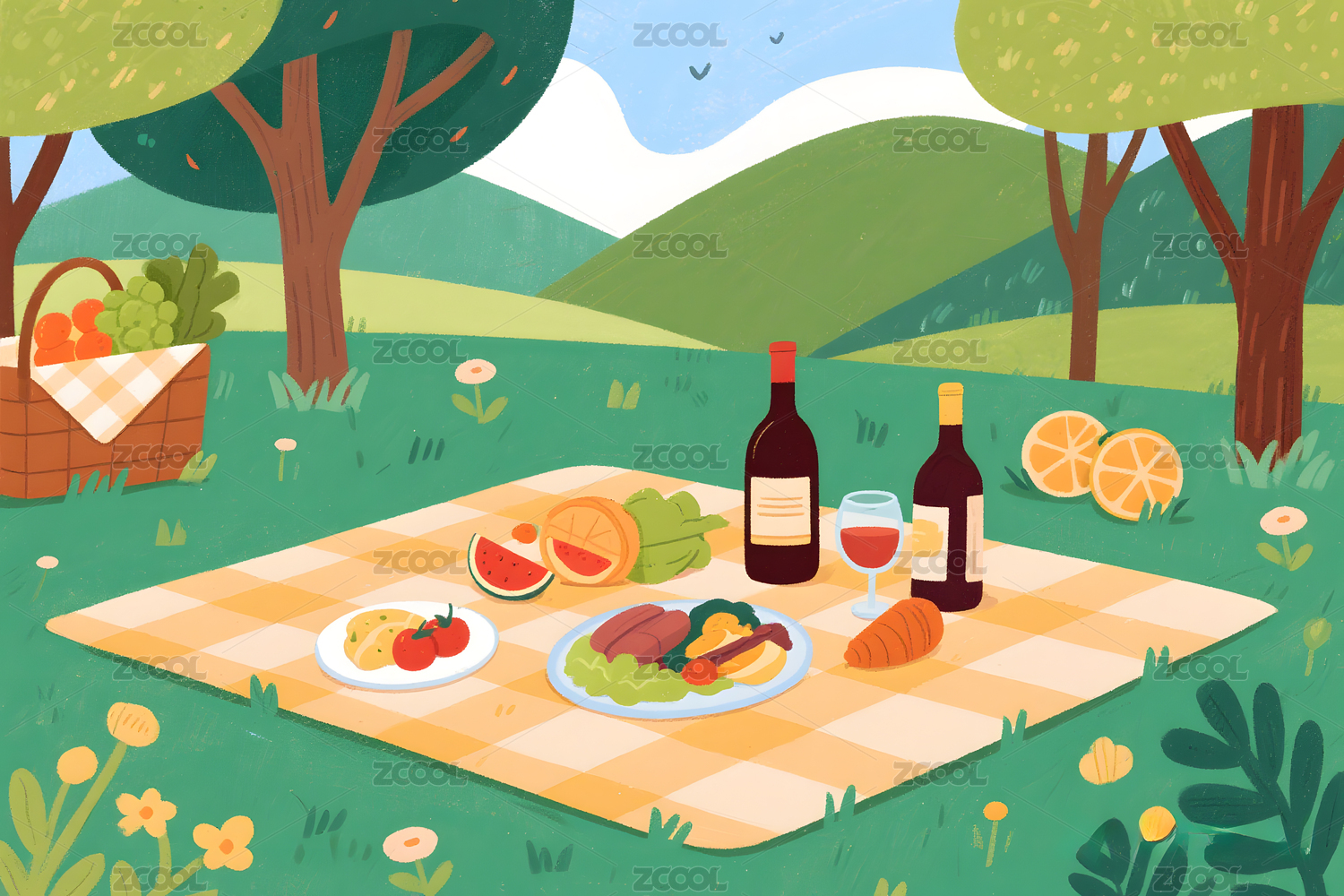 水彩风格野餐背景