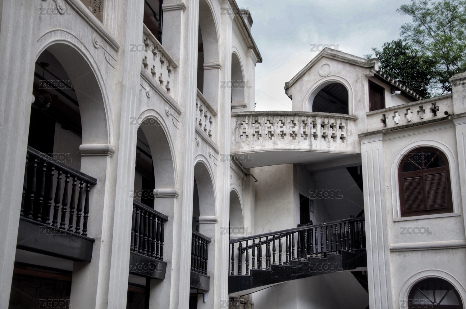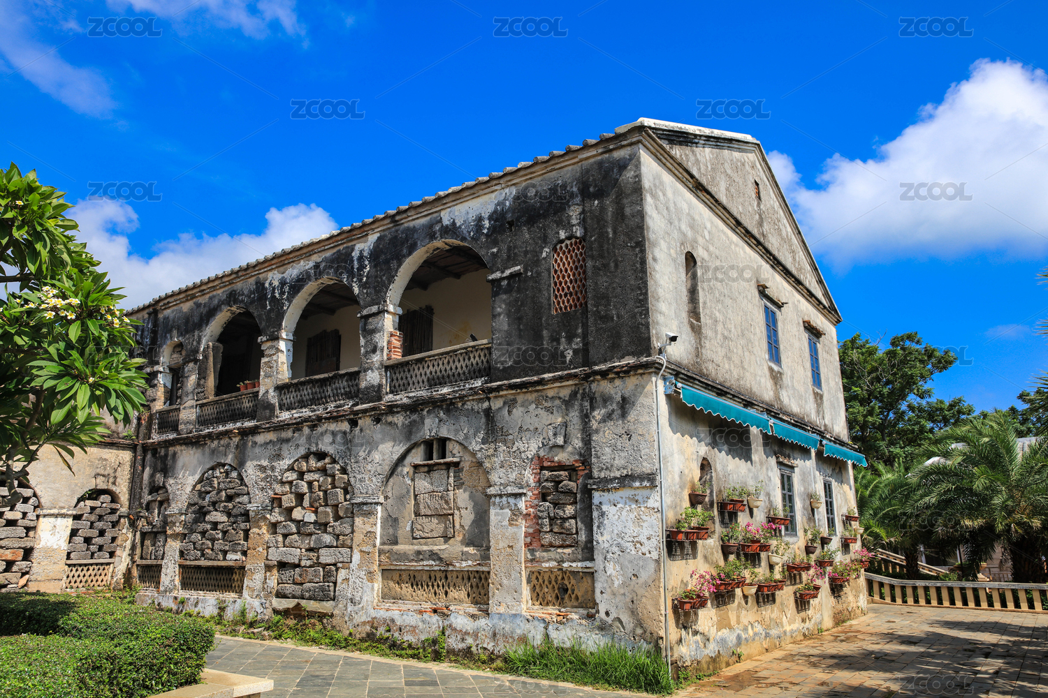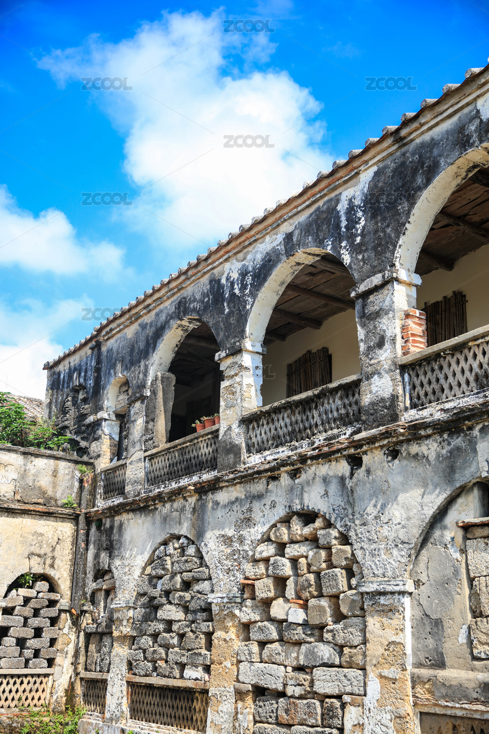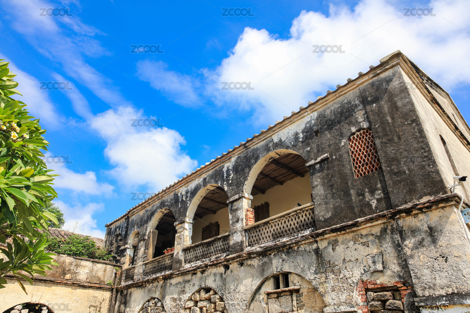 白色建筑映衬蓝天白云,阳光笼罩下倒映在泳