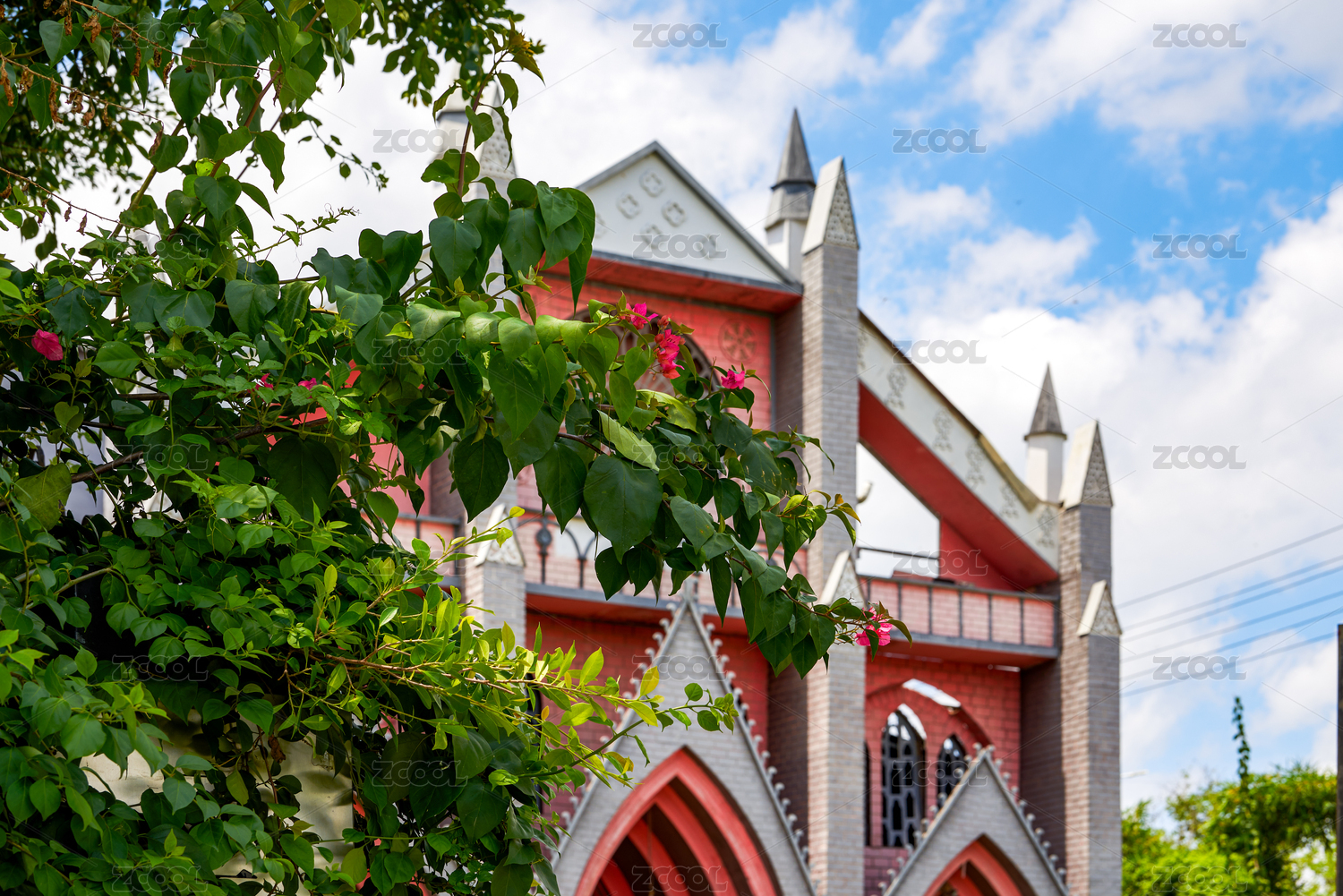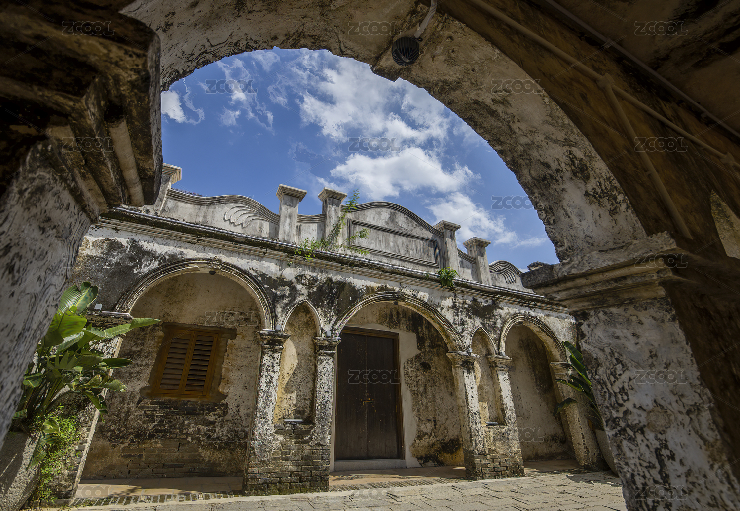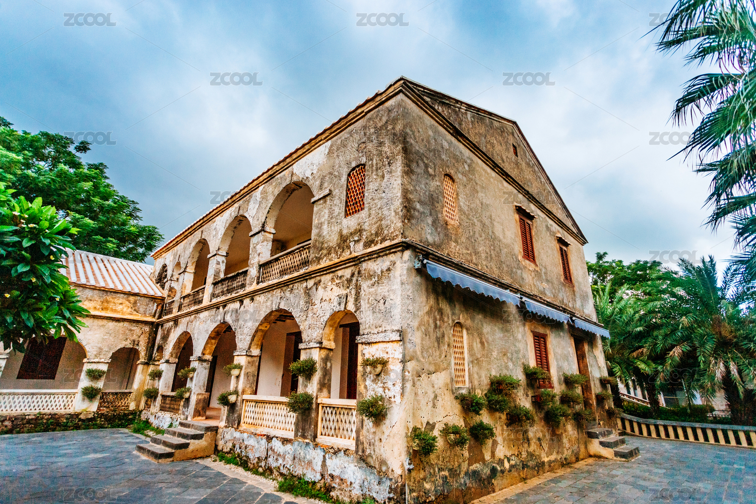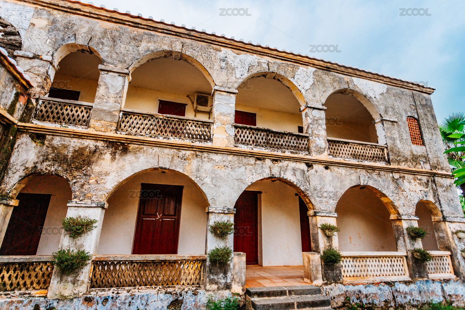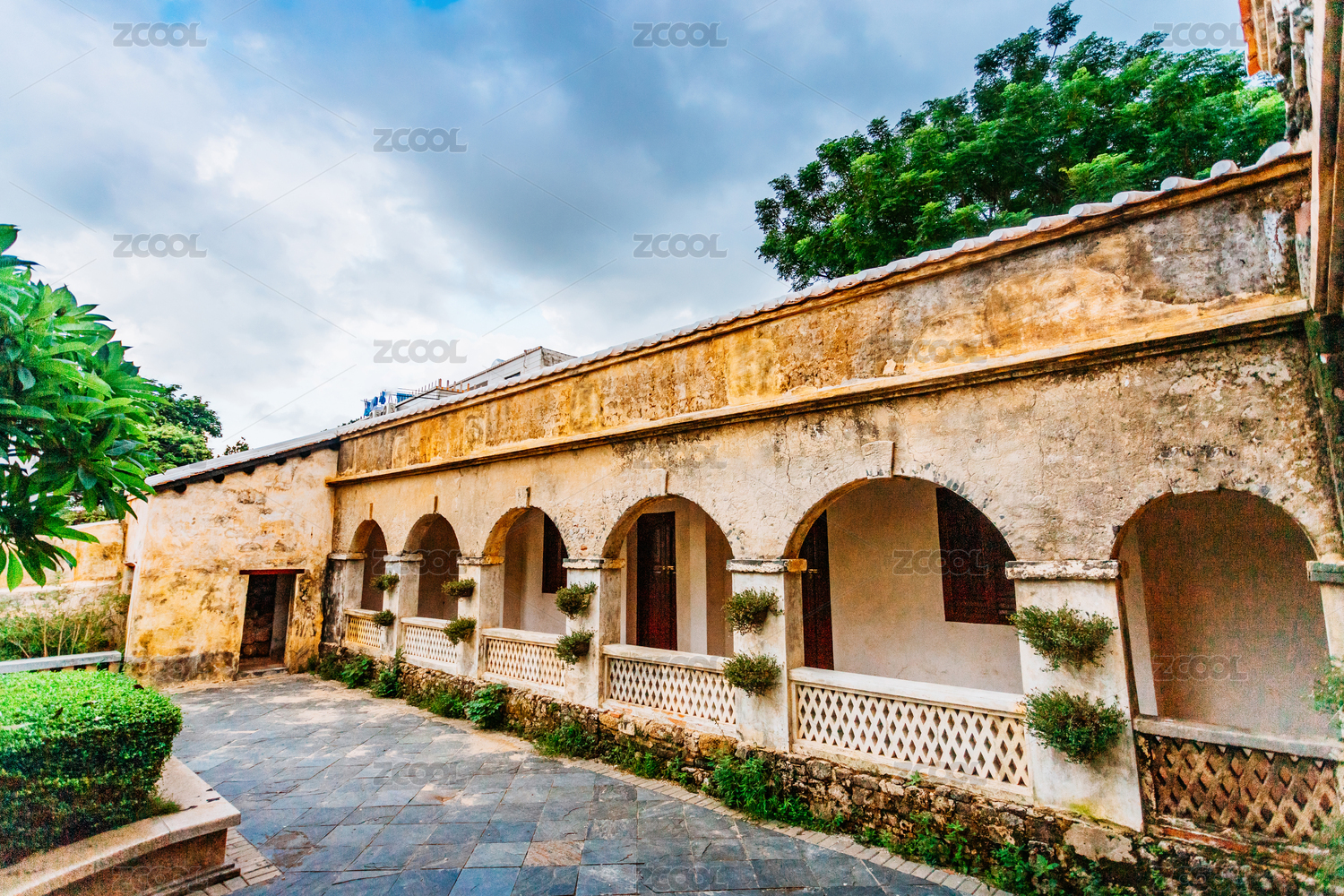 白色建筑映衬蓝天白云,阳光笼罩下倒映在泳