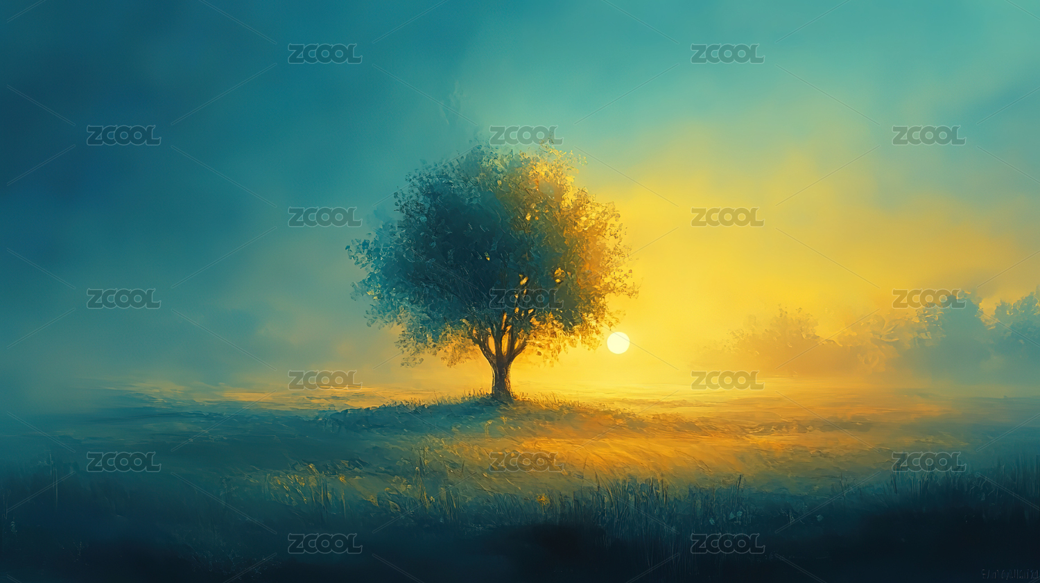 秋天草原上的一颗大树