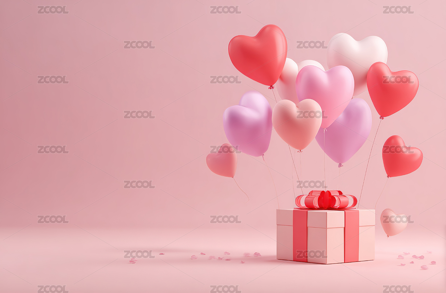 心形气球飘浮于礼盒之上