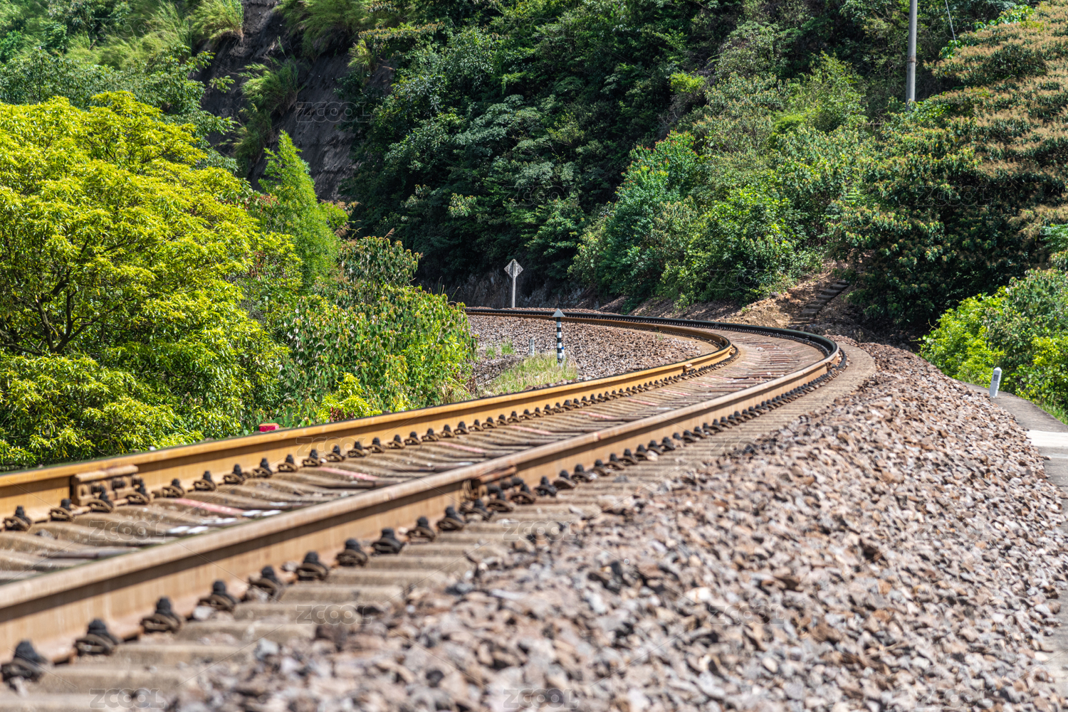 绿树成荫的山中运输铁路轨道