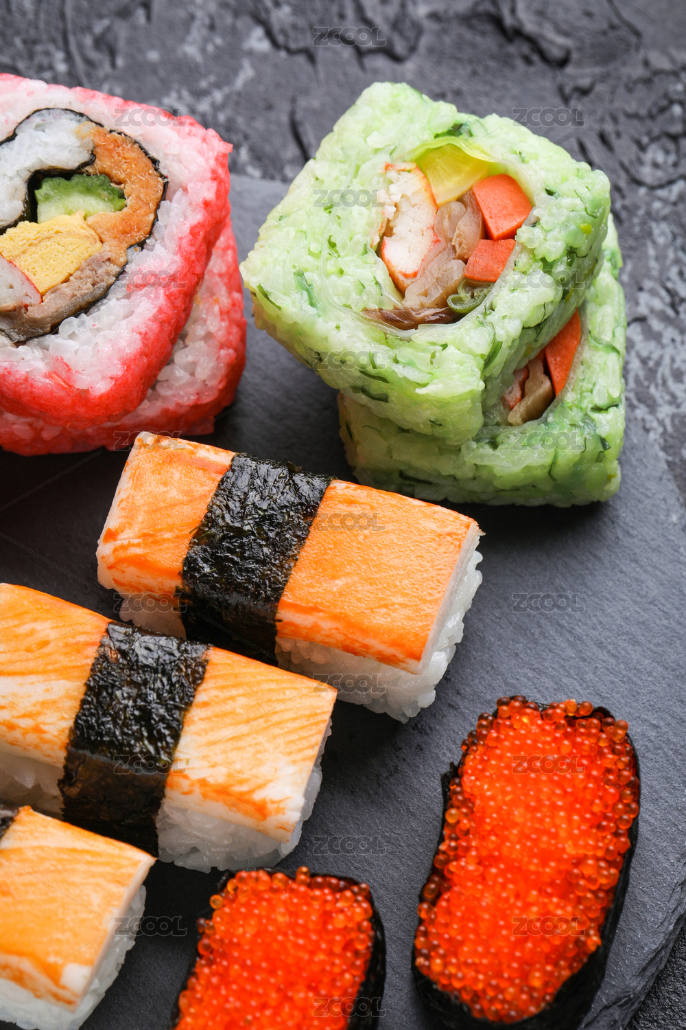 颜色丰富的日本料理寿司拼盘