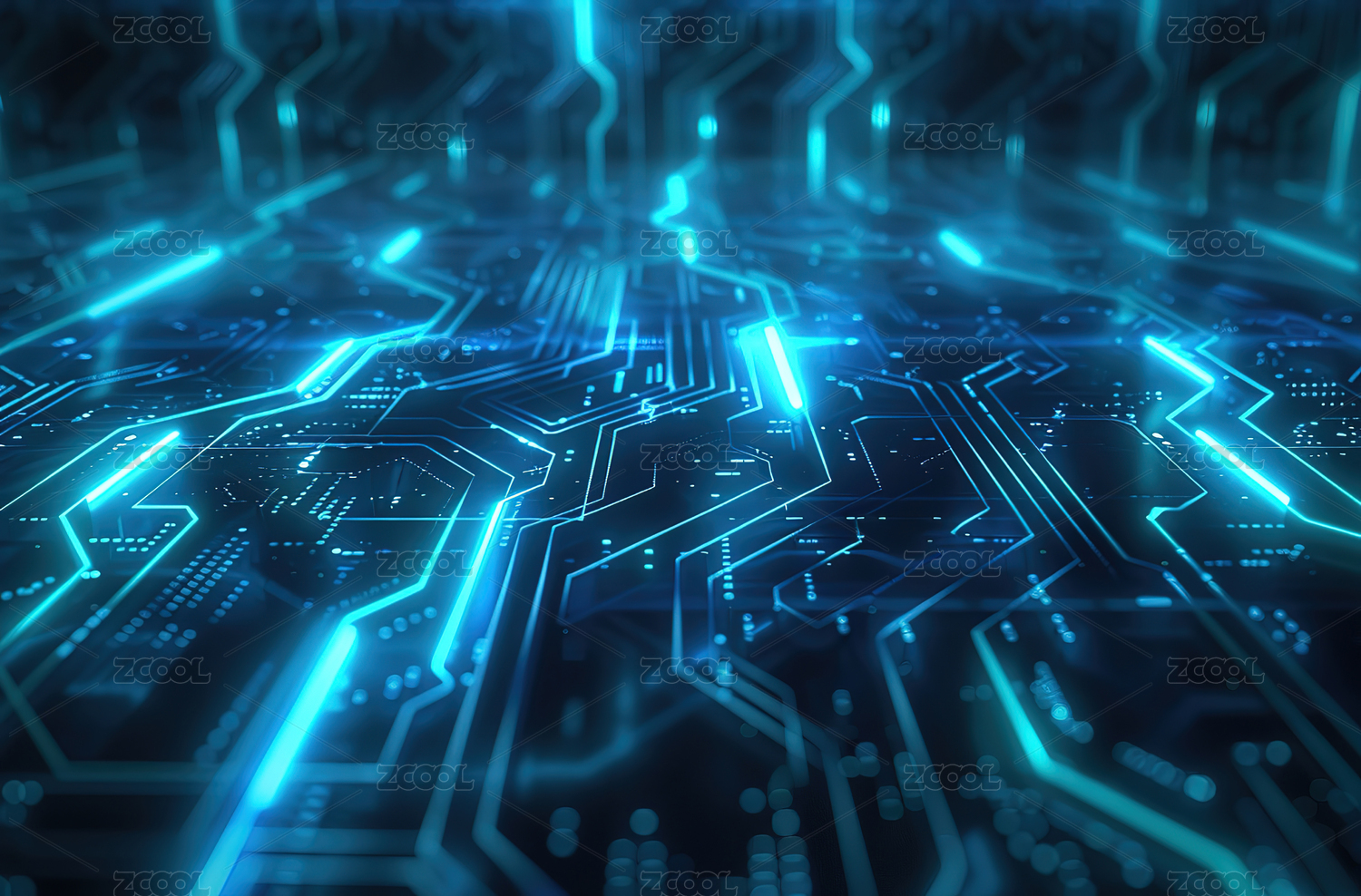科技感蓝色电路板背景图