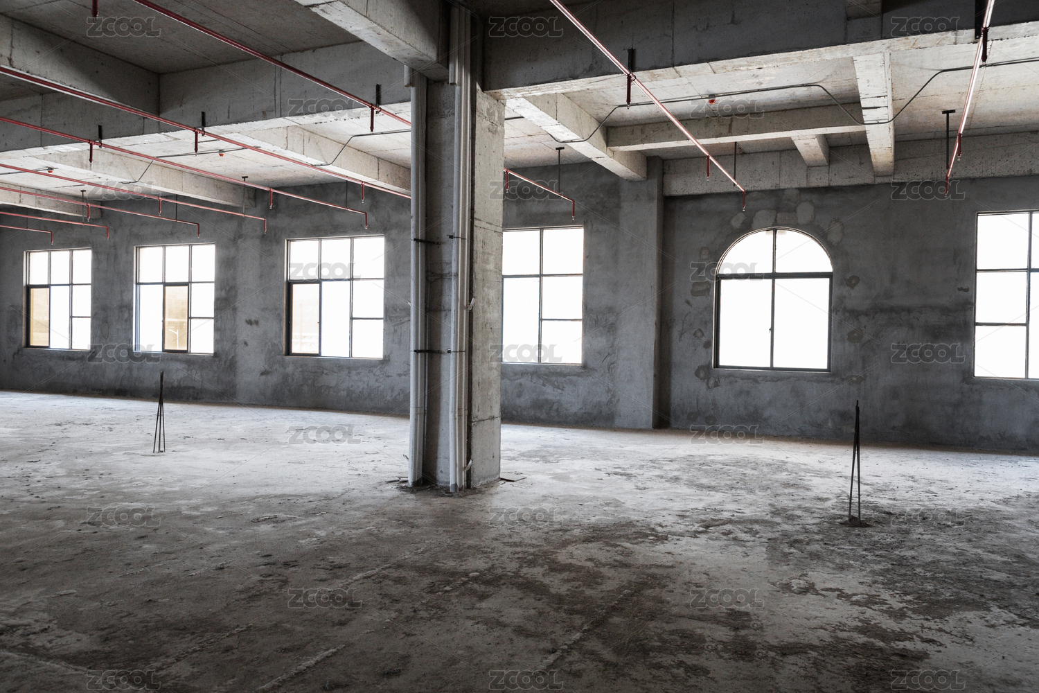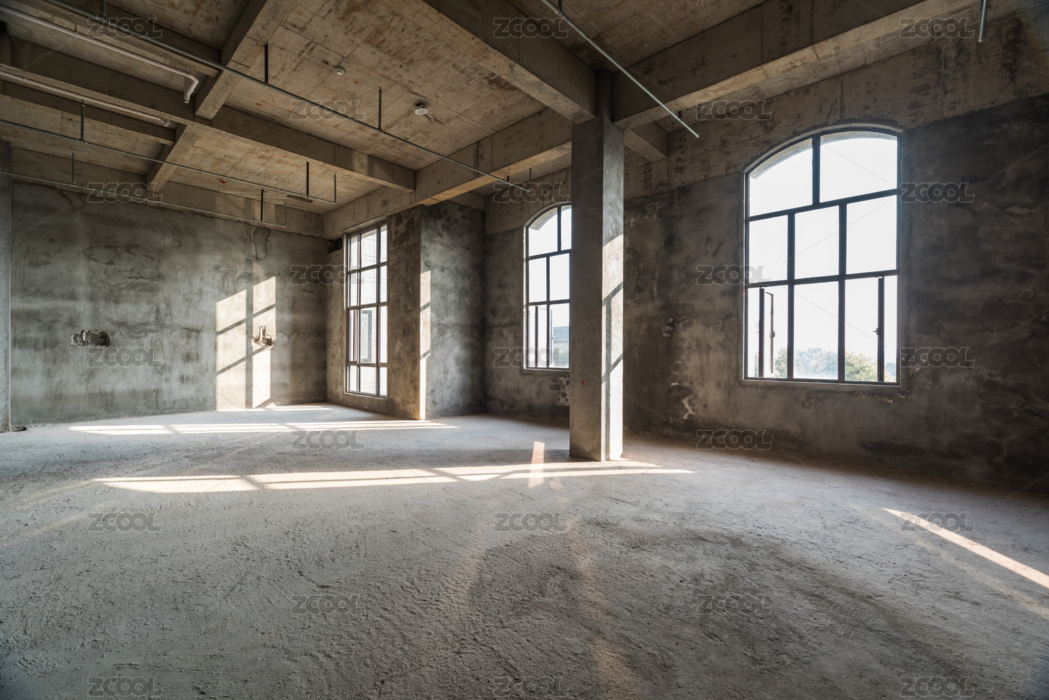 烂尾楼,空的室内空间,宽敞的房间,自然光从窗户照亮。