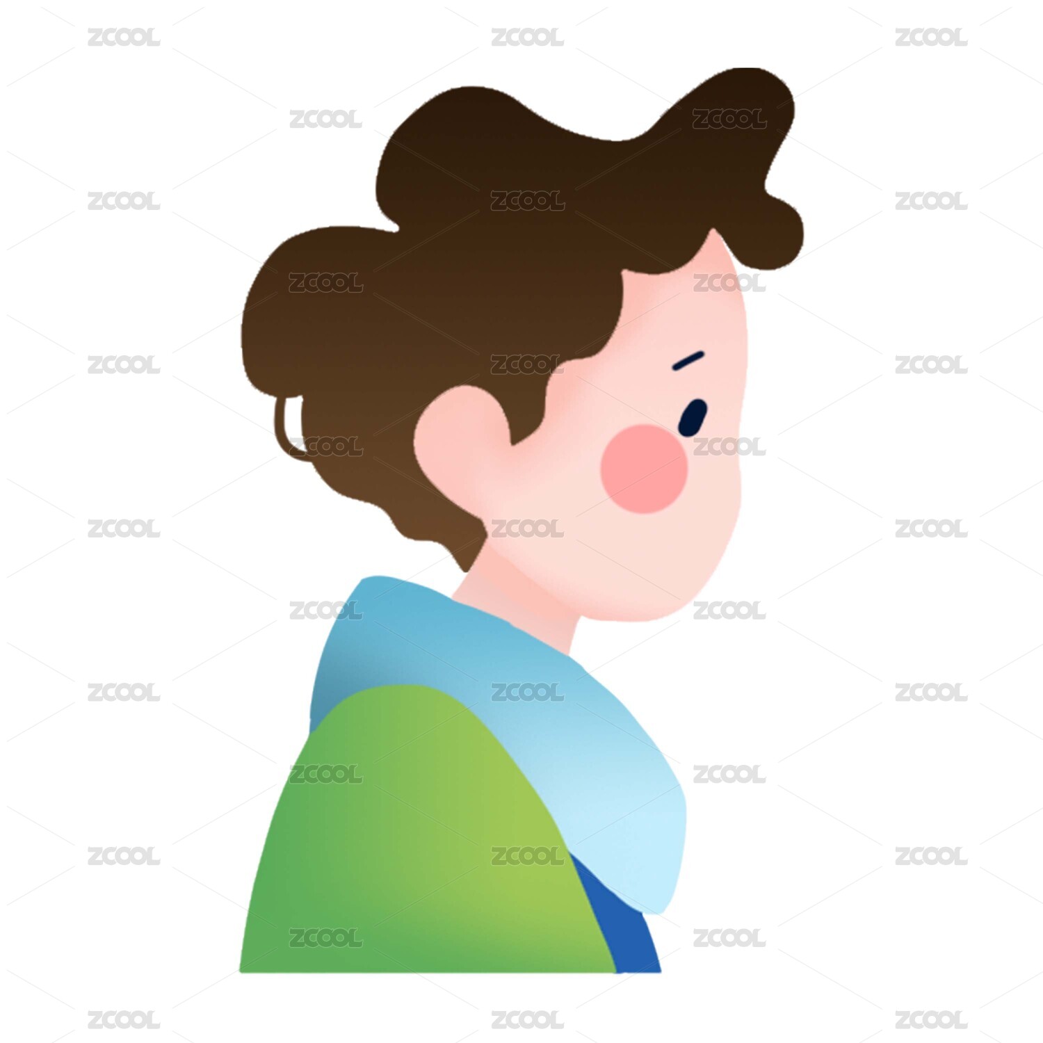 手绘卡通q版坐着双手托头的可爱男孩插画