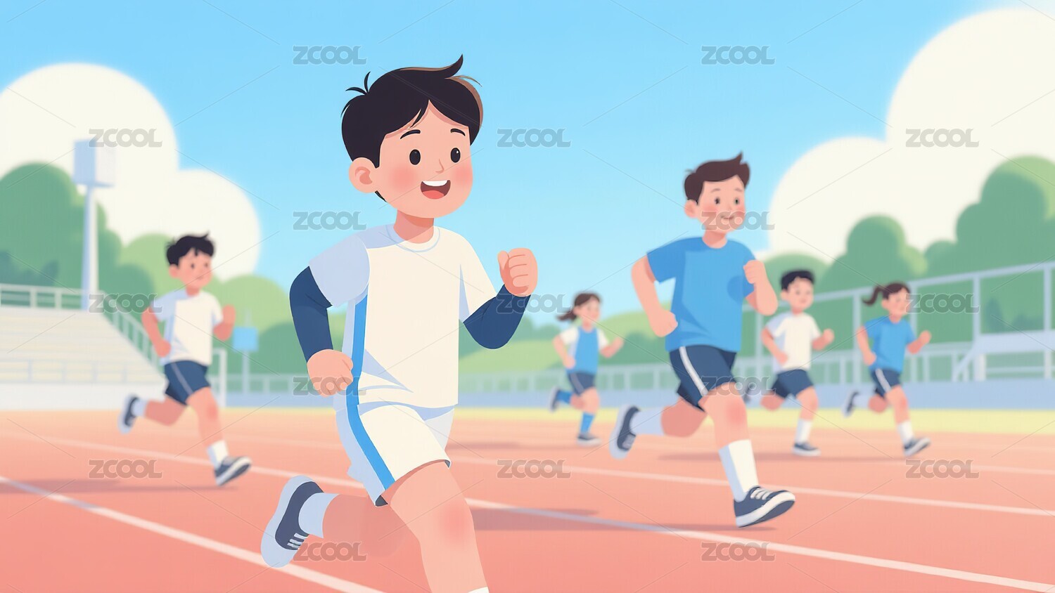 在跑道上跑步的小男孩