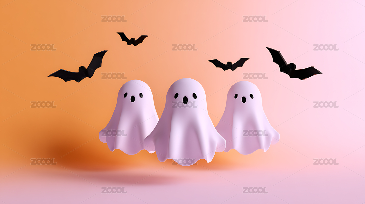 卡通可爱俏皮的白色幽灵在黑暗中绽放笑容