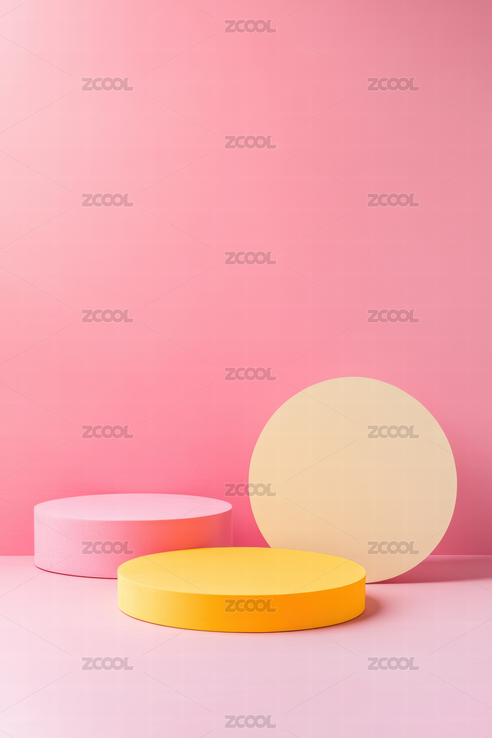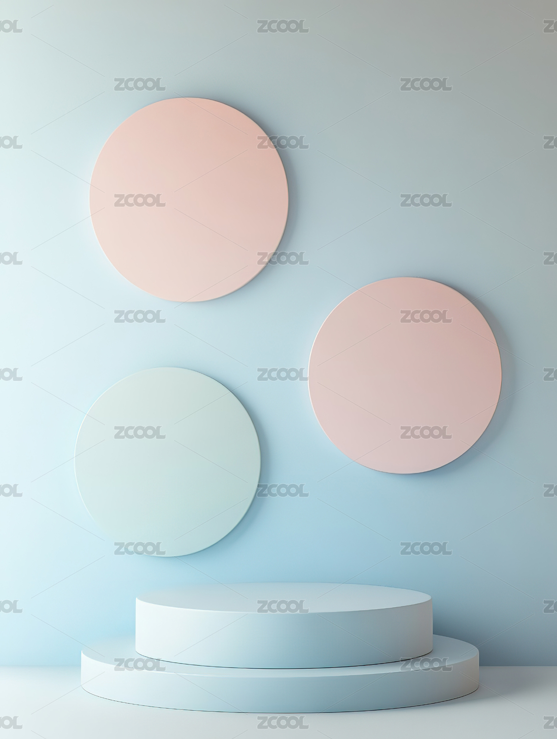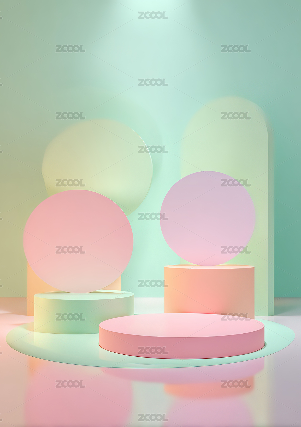 梦幻粉蓝渐变色展台底座电商3D效果图