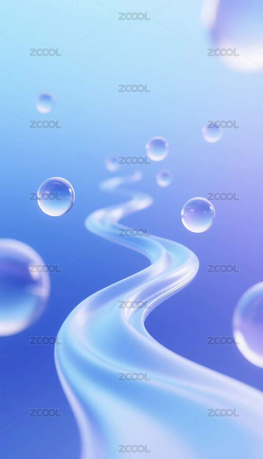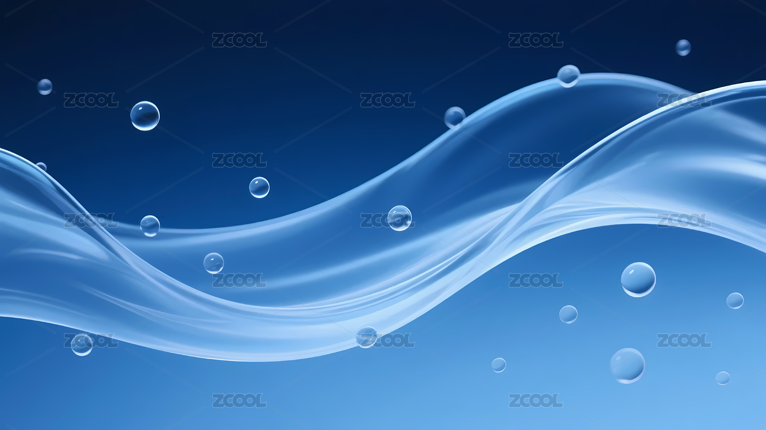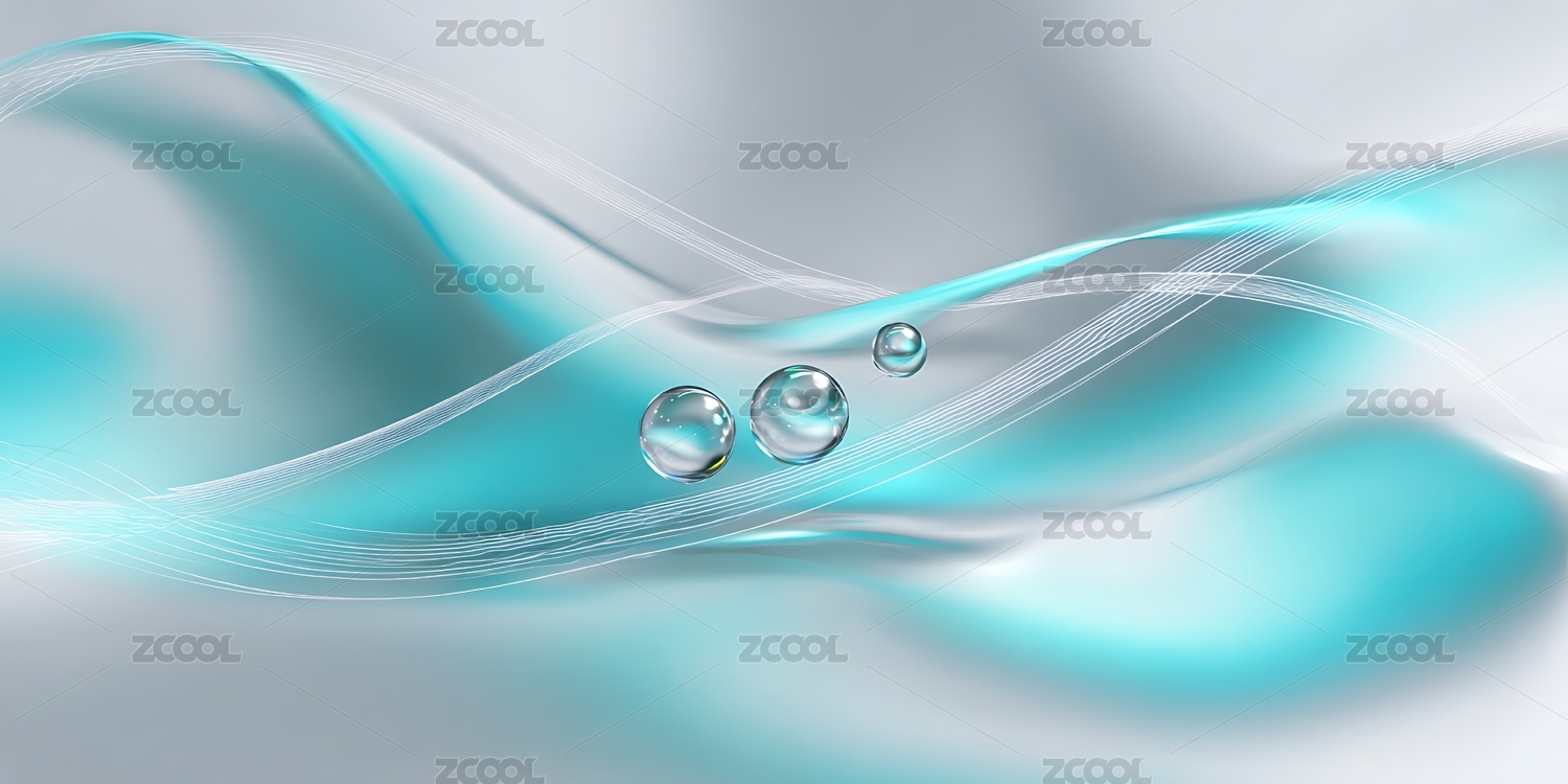 蓝色玻璃曲线背景和玻璃球体3D渲染
