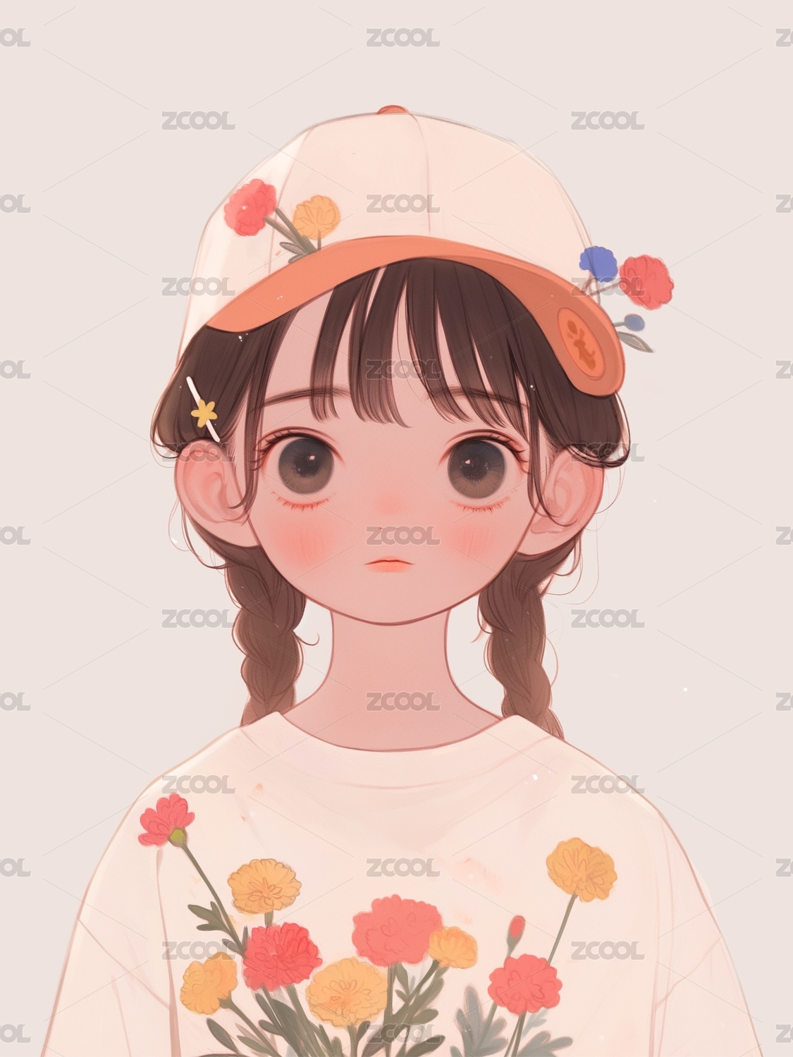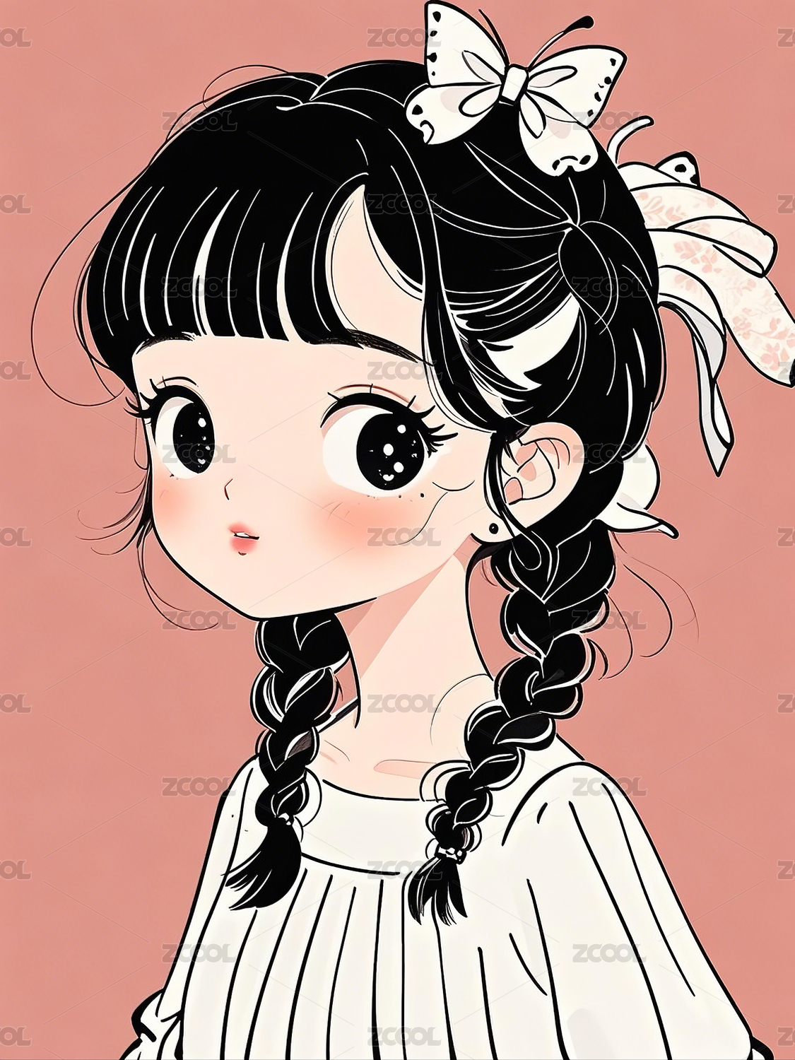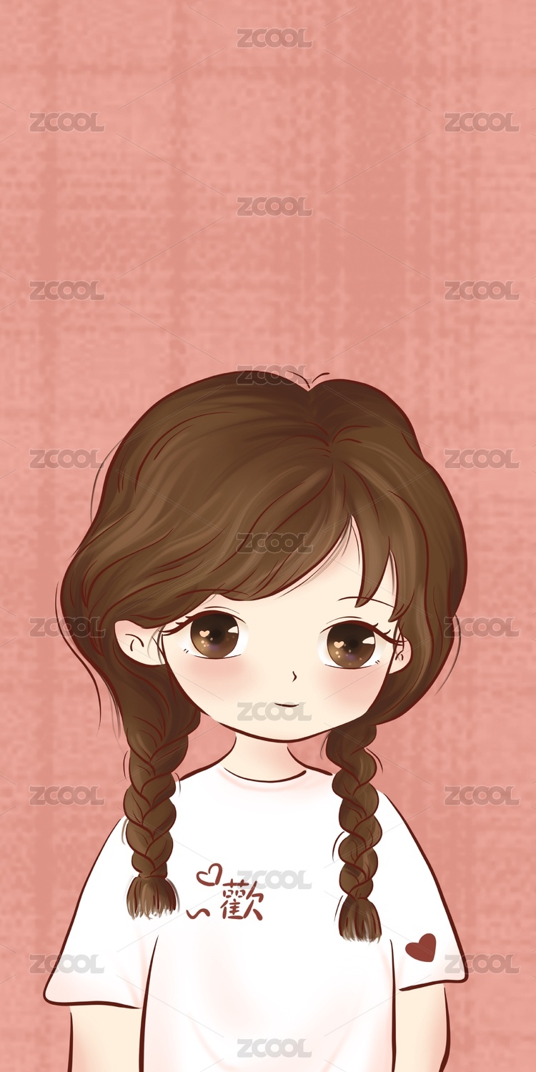 手绘卡通可爱的穿着红色唐装的女孩插画