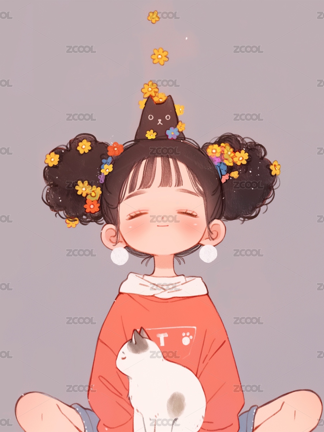 手绘,卡通,可爱,唐装,女孩,插画,漂亮,汉服,亚洲服饰,红衣裳