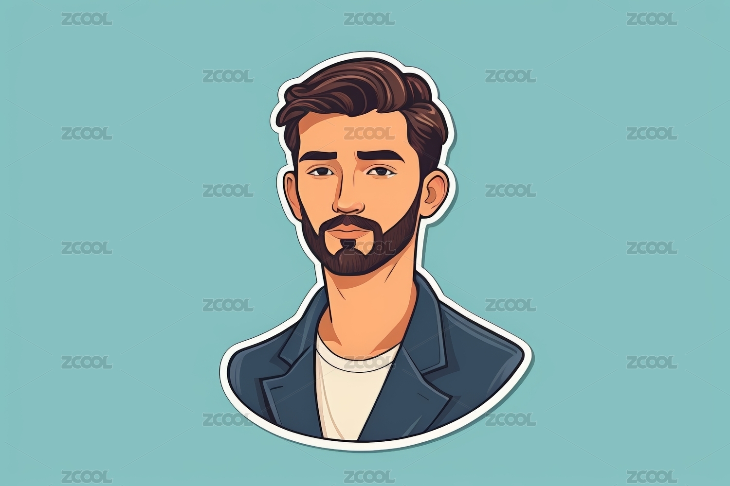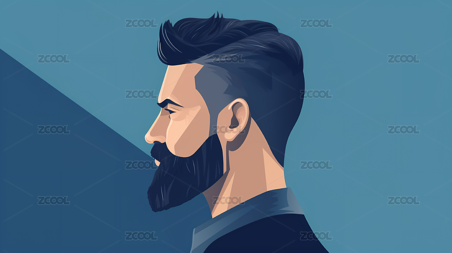 黑色男士时尚肖像大头照矢量扁平化设计背景