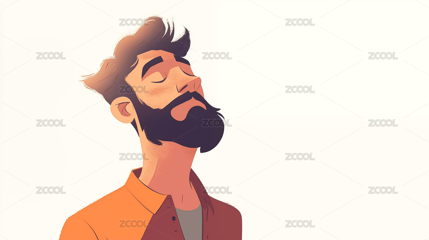 橙绿男士时尚肖像大头照矢量扁平化设计背景