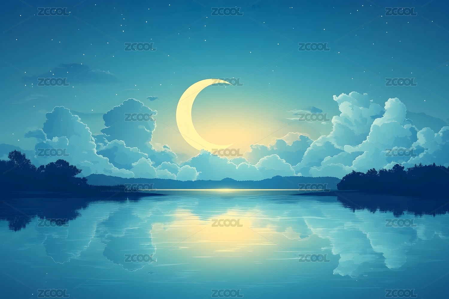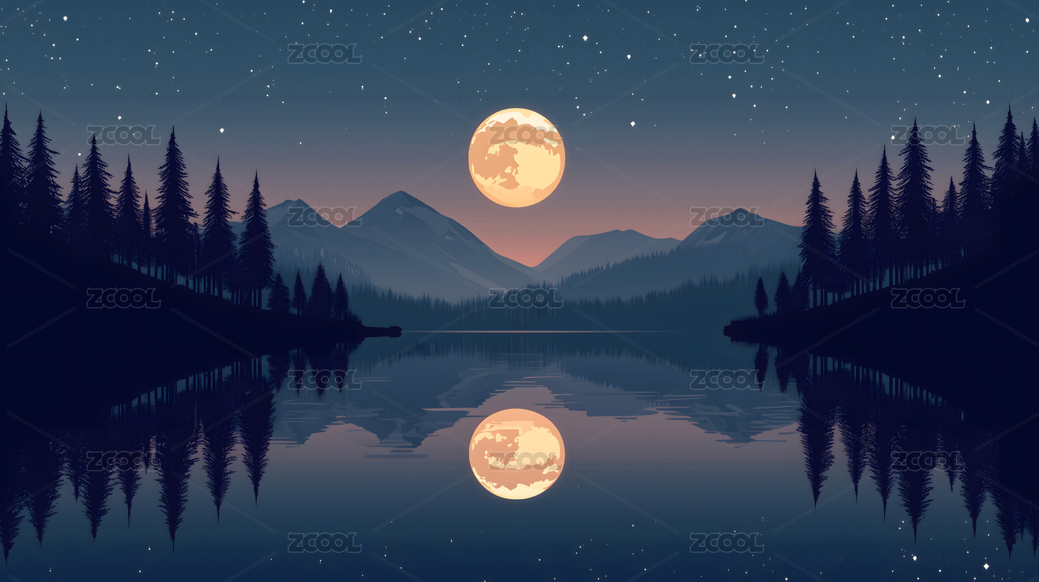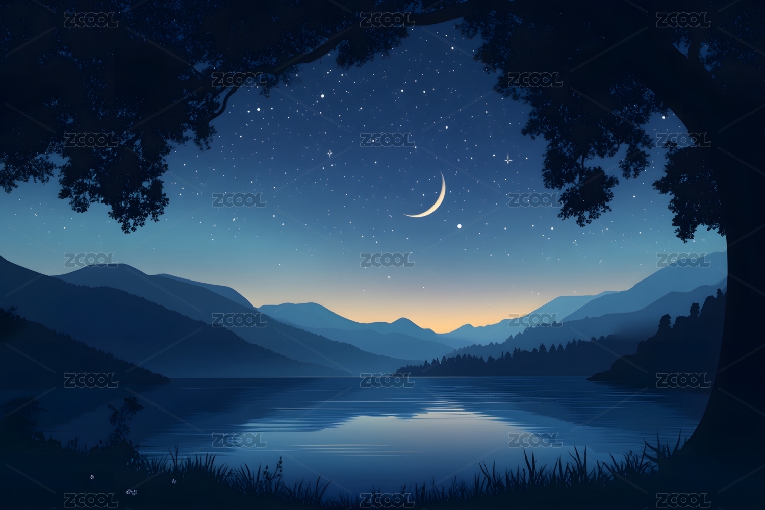 夜晚,星空,风景,湖泊,倒影,树木,灌木,山脉,星星,云彩