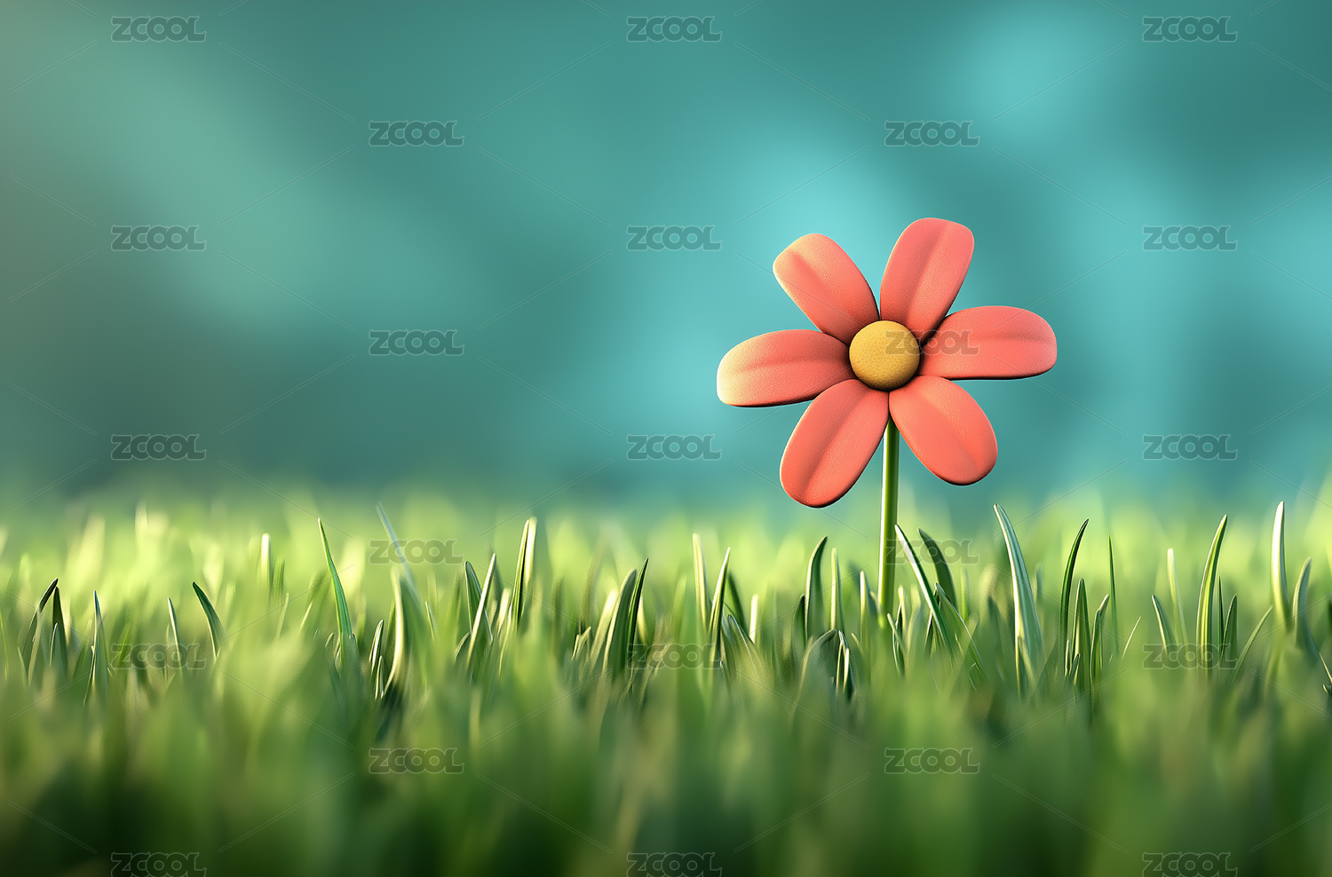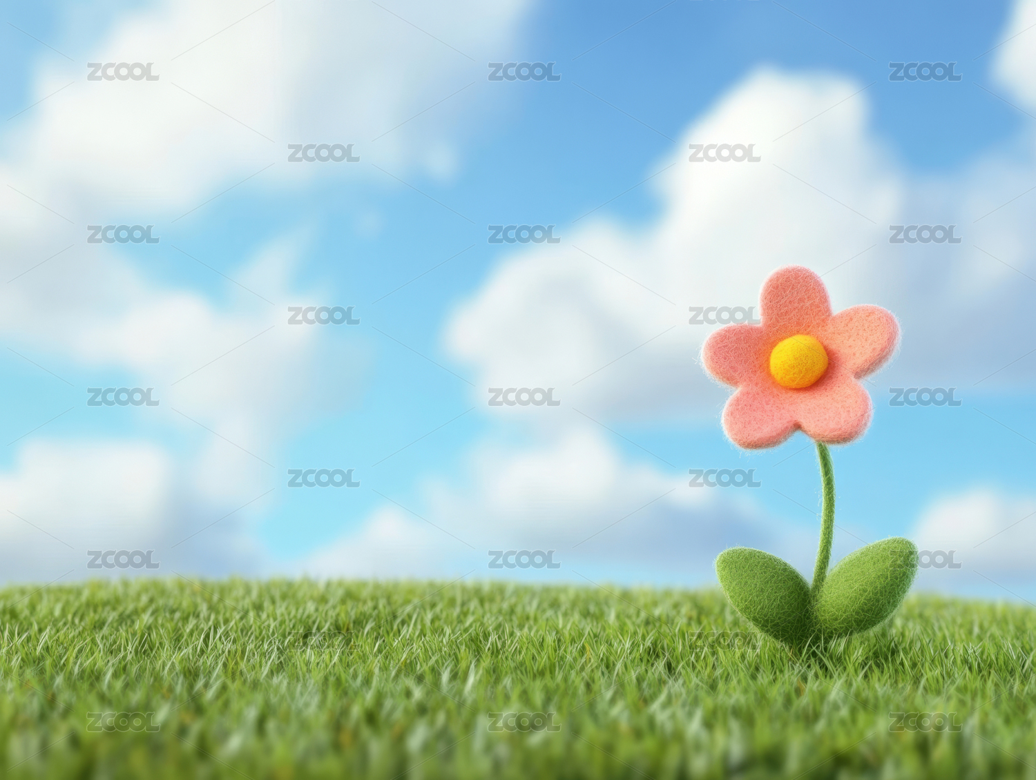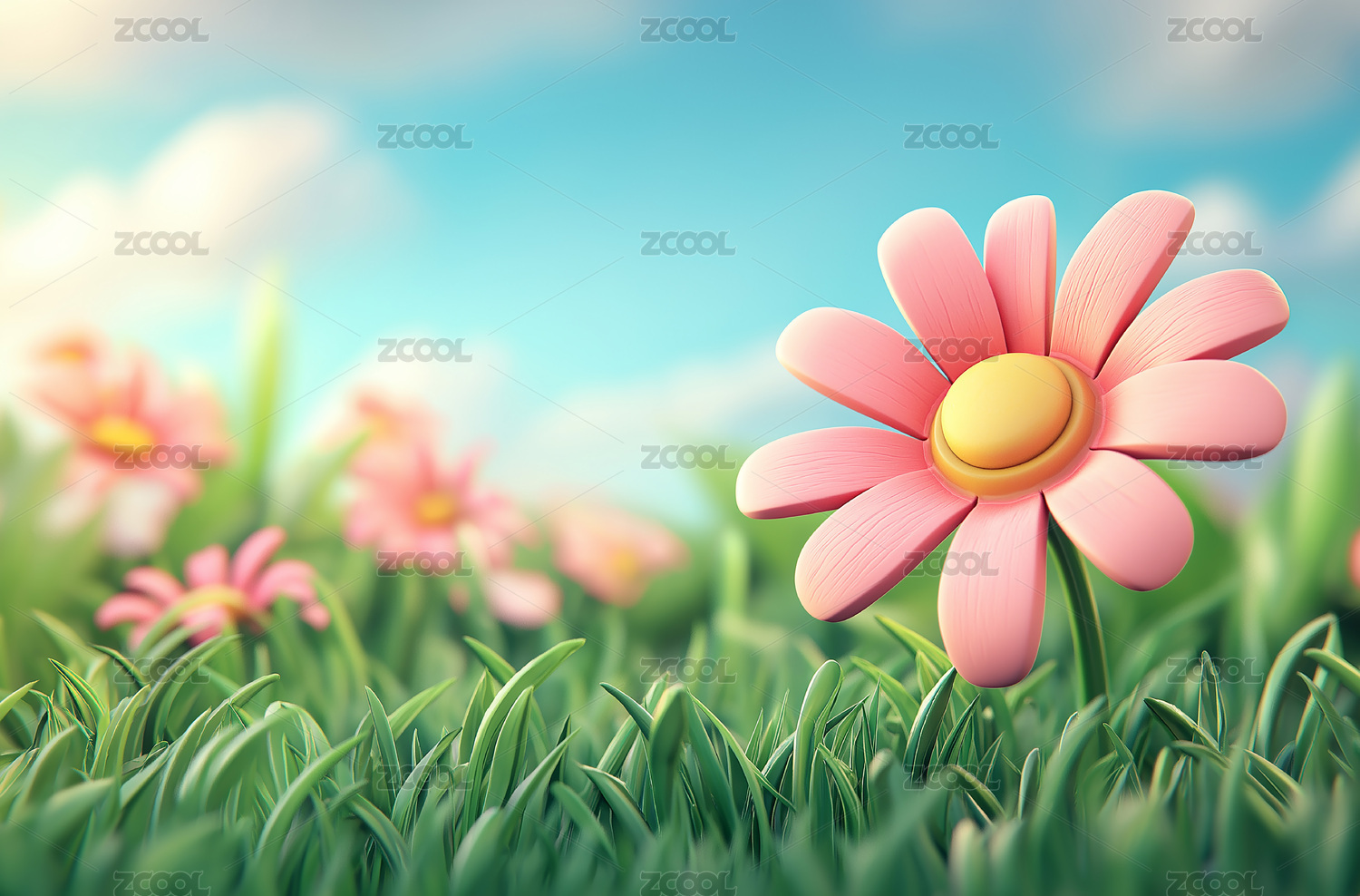 春天,草地,小花,蓝天,白云,留白,背景,自然,插画,节气