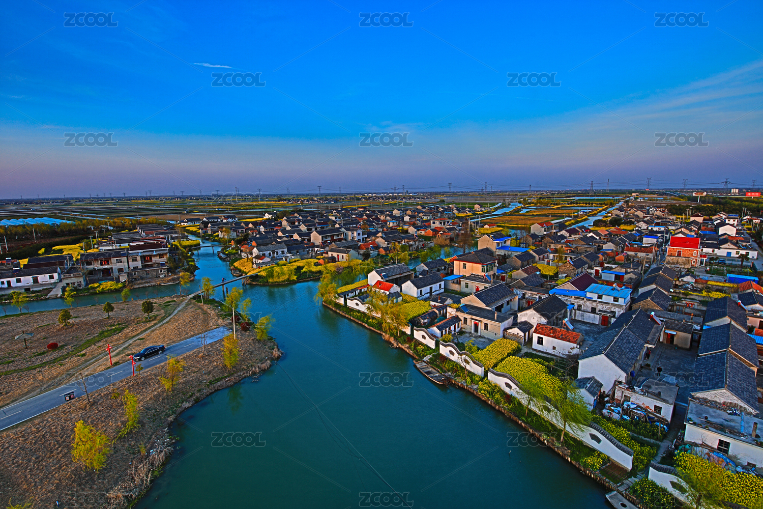 航拍周庄古镇全景