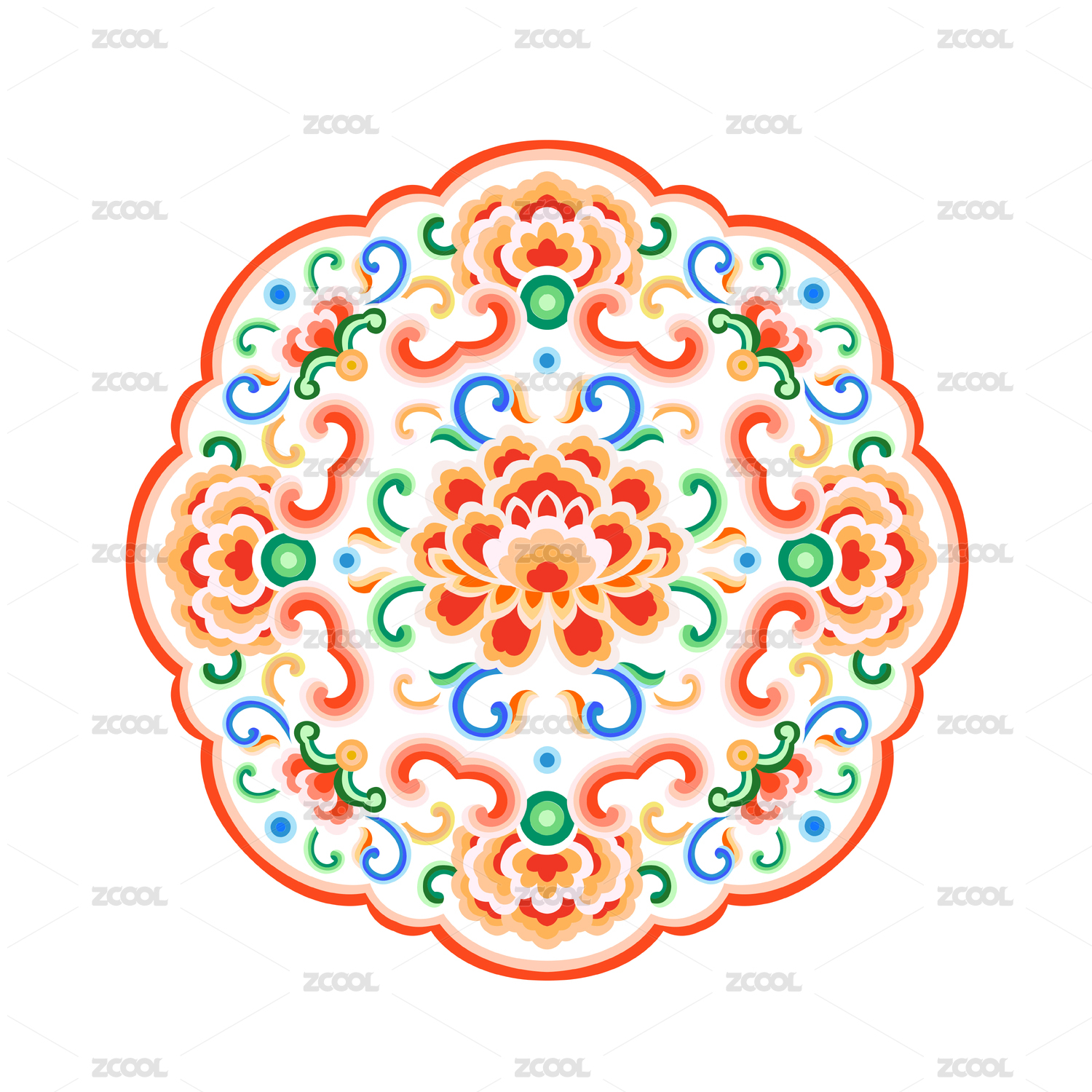 矢量,现代,温馨,浪漫,插画,圆形,团花,花纹,边框,祥云