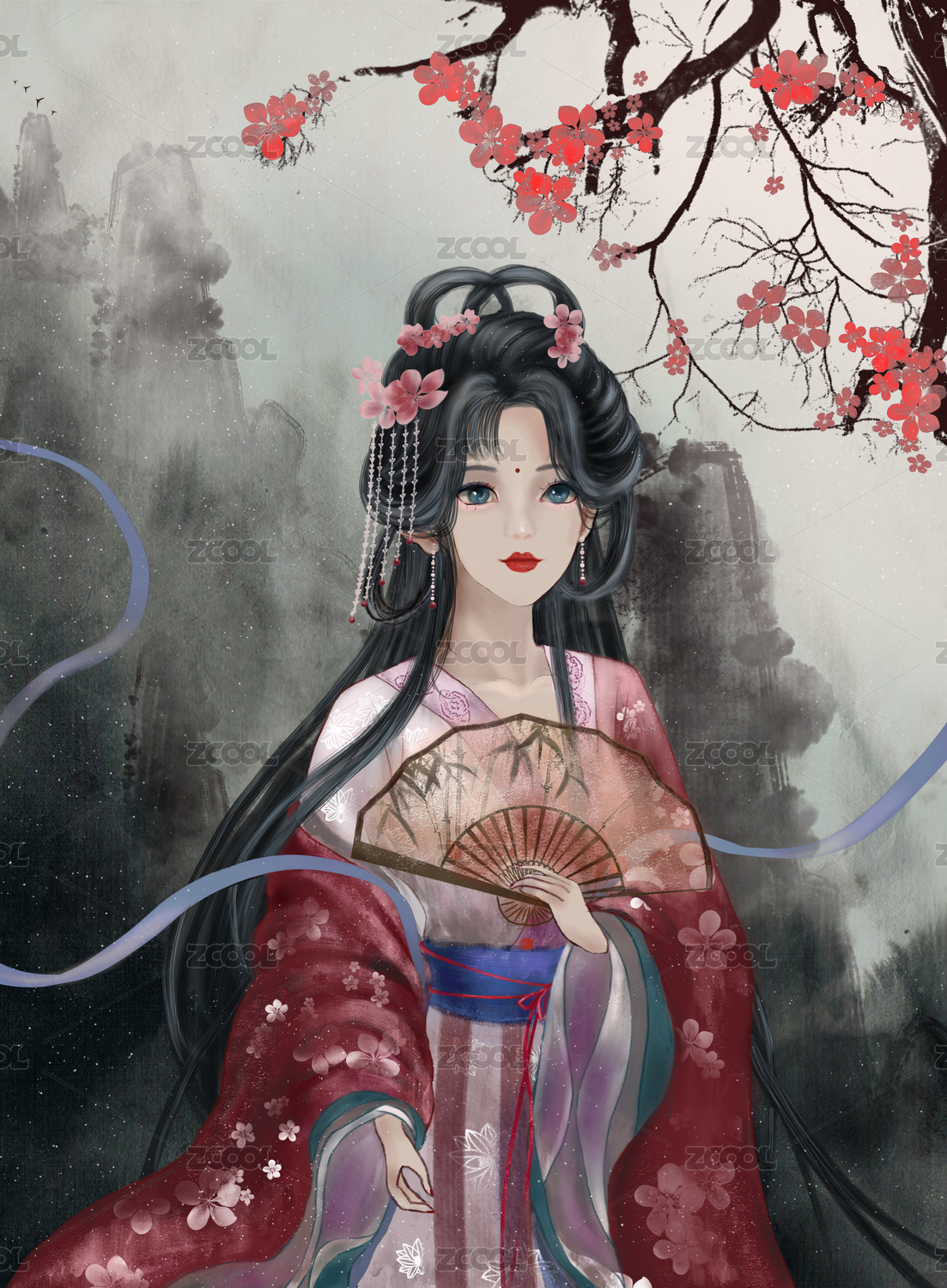梅花树下古风美女插画