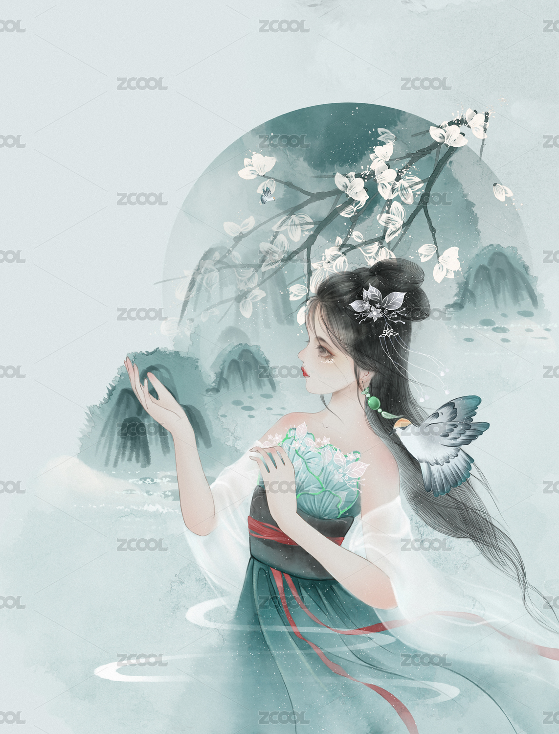 古风中国风女生唯美清新插画