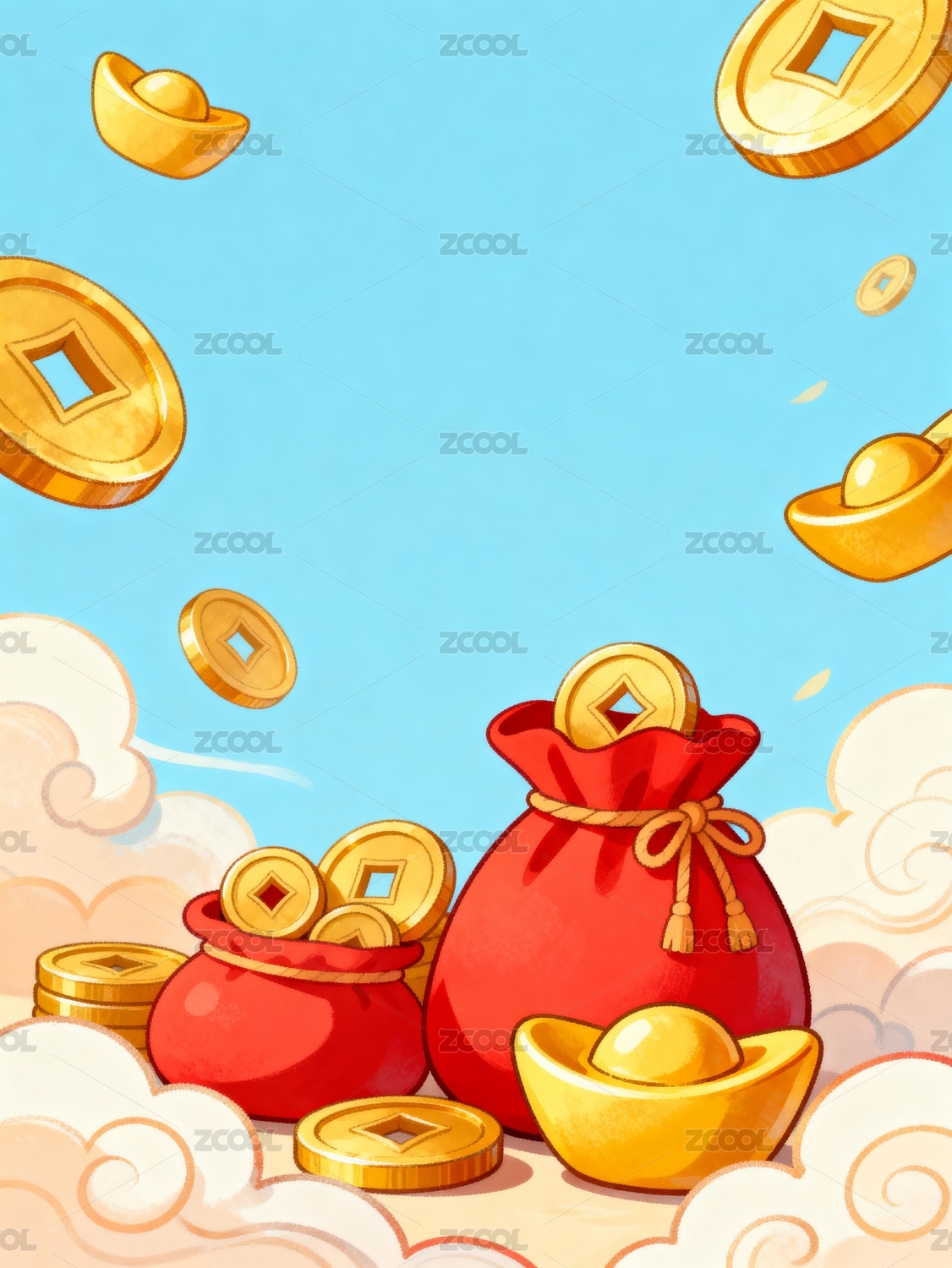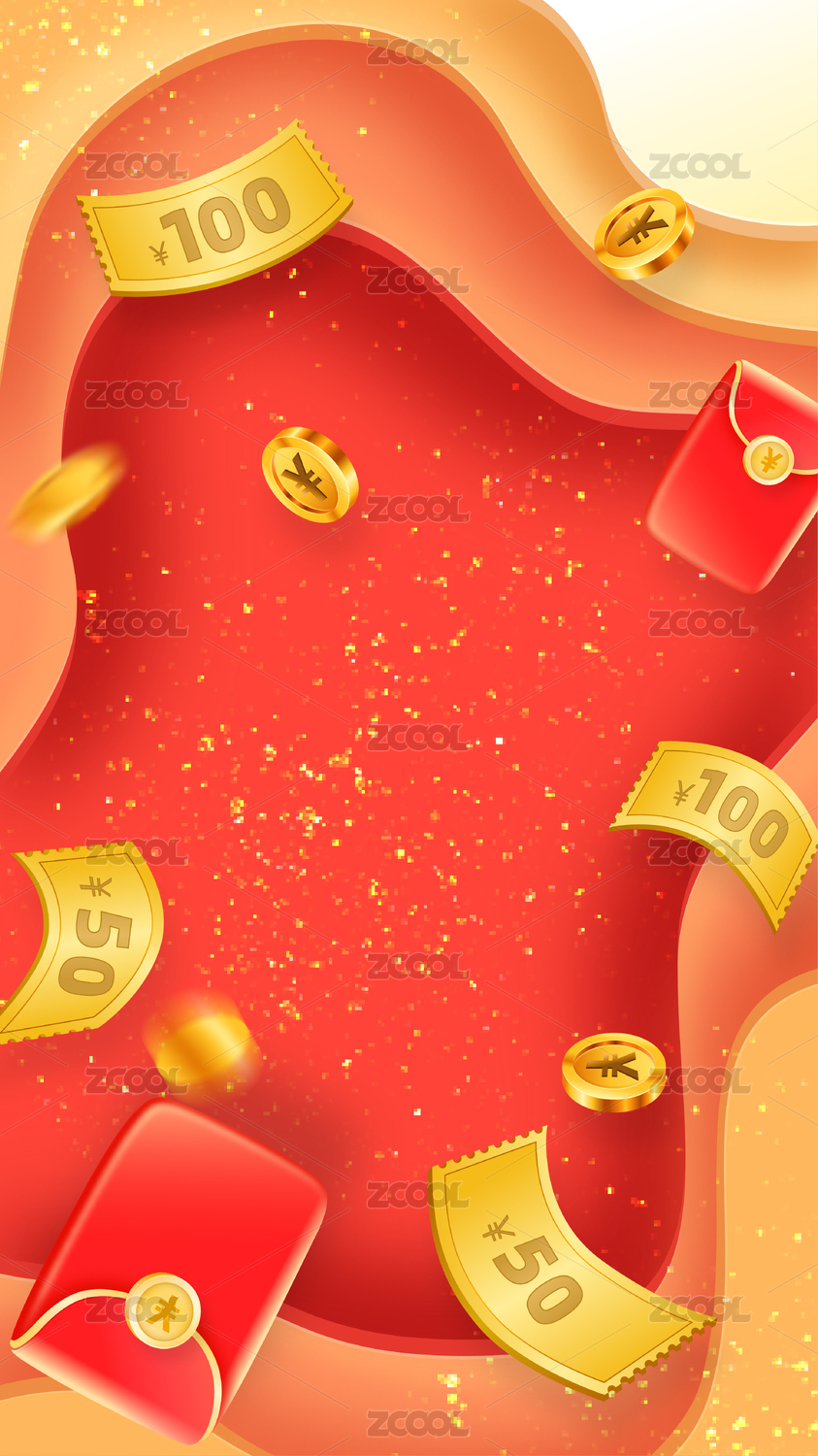 锦鲤灯笼热闹红包雨来袭优惠券飘飞矢量插画