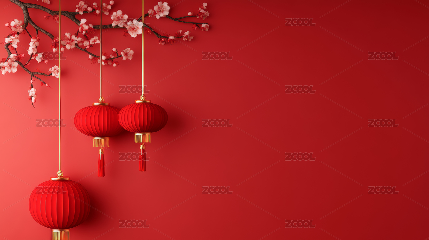 新年梅花和灯笼留白背景