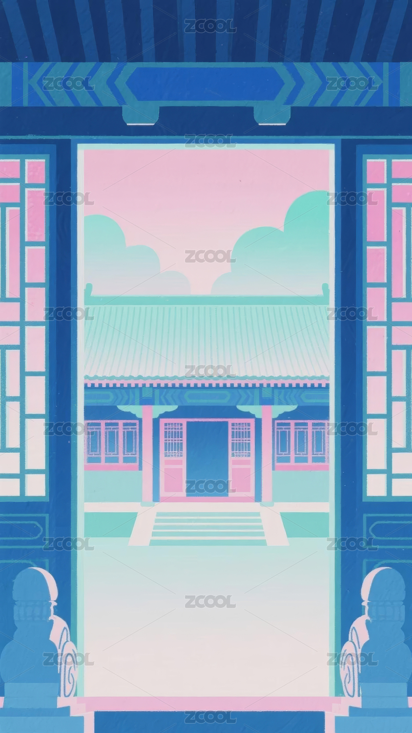 中式复古典传统建筑房子房屋檐镂空门窗户